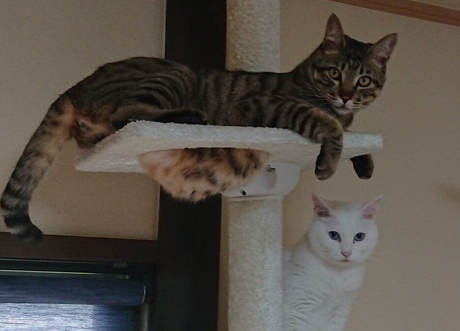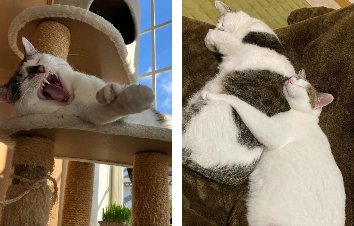 パートナーの実家で保護された2匹の子猫を、宮本さんが引き取りました。別々の時期に迎えましたが、兄弟と知ってか知らずか、とても仲良く過ごしています。