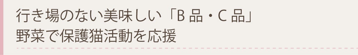 今回は、そんな行き場のない美味しい野菜たちを味わいながら、保護猫活動にも参加していただけるよう、「B品・C品」の野菜をご用意しました。