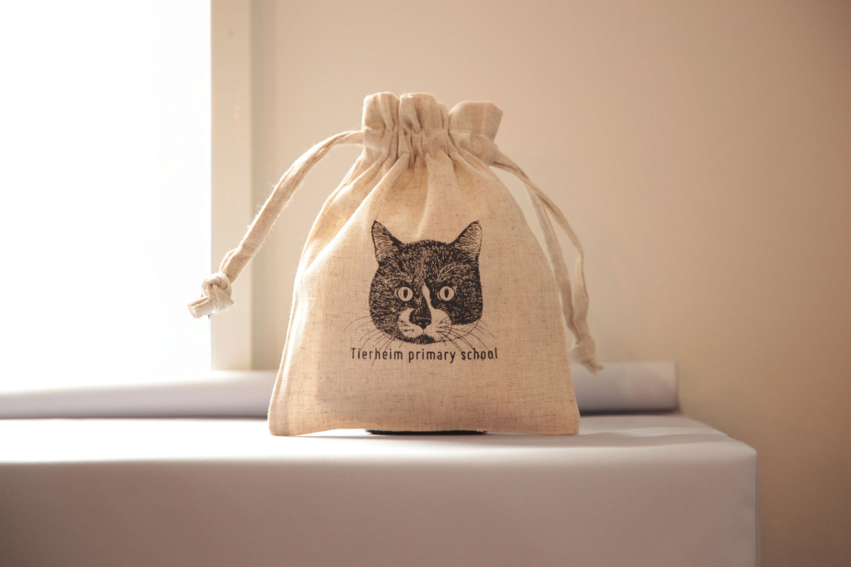 ティアハイム小学校のレジェンドとなったロイ君のオリジナル巾着袋です。かばんの中の整頓やおやつ収納袋など、持ち歩き用にも使いやすいサイズです。