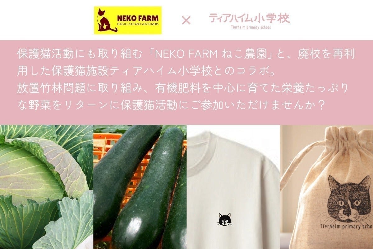 ねこ農園では、有機肥料や竹パウダー、落ち葉、籾殻など、自然の恵みを活かした土づくりにこだわり、野菜を育てています。化学肥料を使わず、有機肥料で土を育て、野菜本来の美味しさを引き出すことを大切にしています。 そして今回、その想いを農業だけでなく、1匹でも多くの猫が幸せな猫生を手に入れられるようにという願いへとつなげたいと思いました。 私自身、3匹の保護猫と暮らし、猫たちからたくさんの幸せをもらっています。 だからこそ、ティアハイム小学校さんの「行き場を失った猫たちが元気にのびのびと暮らせて、そのままの魅力を伝えられる場所を」という考えに深く共感し、少しでも力になりたいと思いました。 私たちが愛情を込めて、有機肥料を使った美味しい野菜が、保護猫たちの未来を支える力となり、支援してくださる皆さんの食卓にも笑顔を届けることができれば嬉しいです。 「いのちを育む農園」から、「いのちをつなぐ活動」へ。 この輪が広がるように、ぜひご支援をお願いいたします!