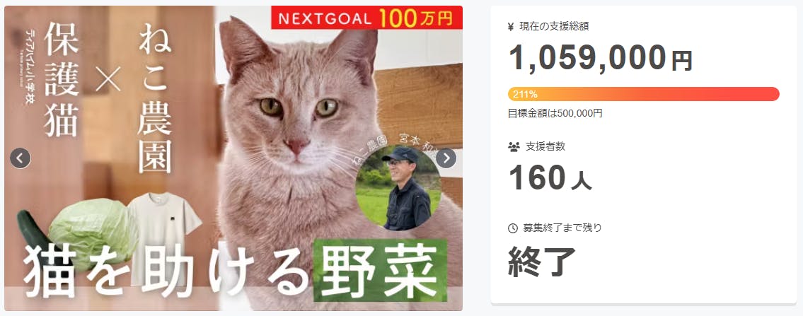 この度は「ねこ農園の野菜で保護猫を助けたい」プロジェクトにご支援いただき、誠にありがとうございました。