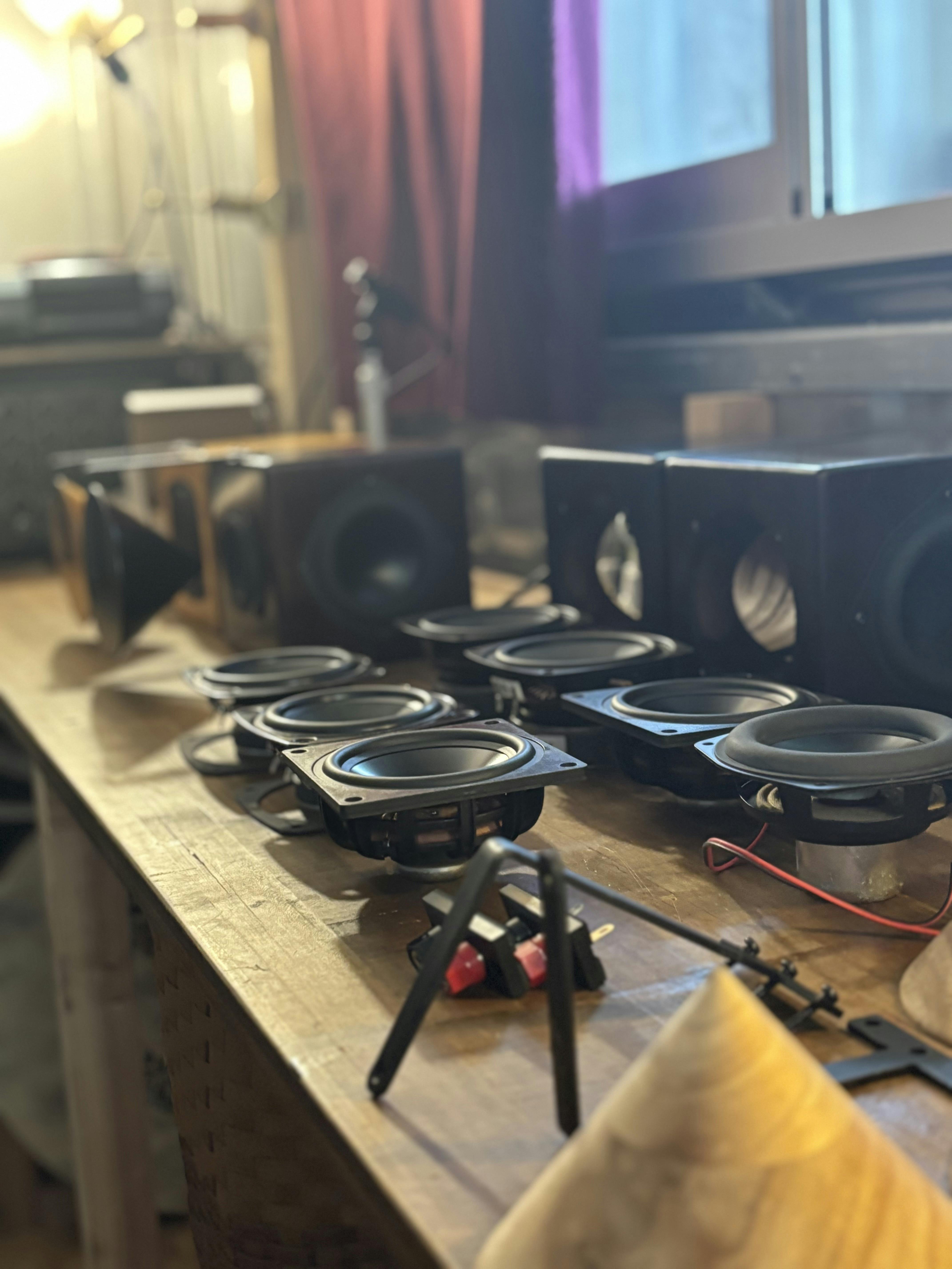 これまでの経験からプロとして安易にスピーカーを作るのはリスクがある為、納得いく形になるまで販売は出来ないという事、既製品とは系統が違う私達にしか作れない製品を作ろうと思いスタートしました。