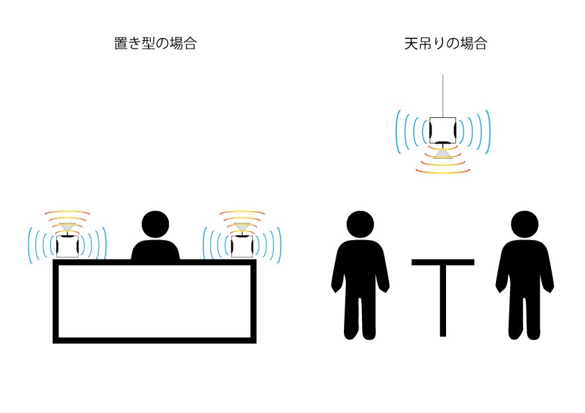 スピーカーの設置方法は天吊り、置き型、どちらで使用出来ます。
