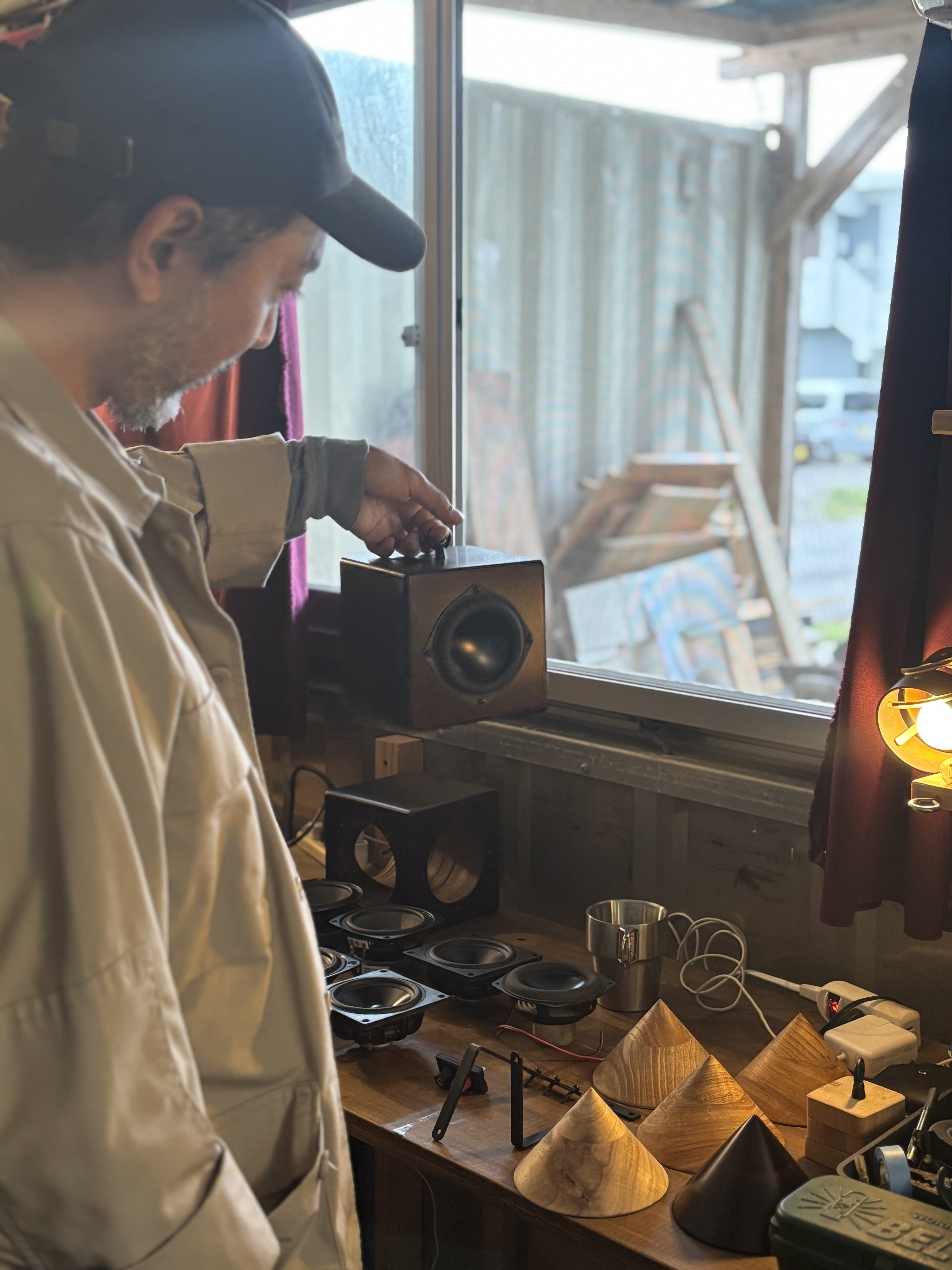 これまでの経験からプロとして安易にスピーカーを作るのはリスクがある為、納得いく形になるまで販売は出来ないという事、既製品とは系統が違う私達にしか作れない製品を作ろうと思いスタートしました。