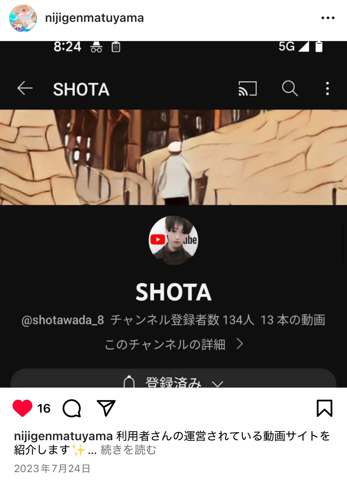 • 初めまして。YouTubeで活動をしています。SHOTAです。現在は、就労継続支援B型事業所 にじげん松山で、クリエイティブな学習をしながら利用者として利用しています。【就労継続支援B型事業所 にじげん松山】詳しい情報は、このリンクをご覧ください。見学・体験募集中です。