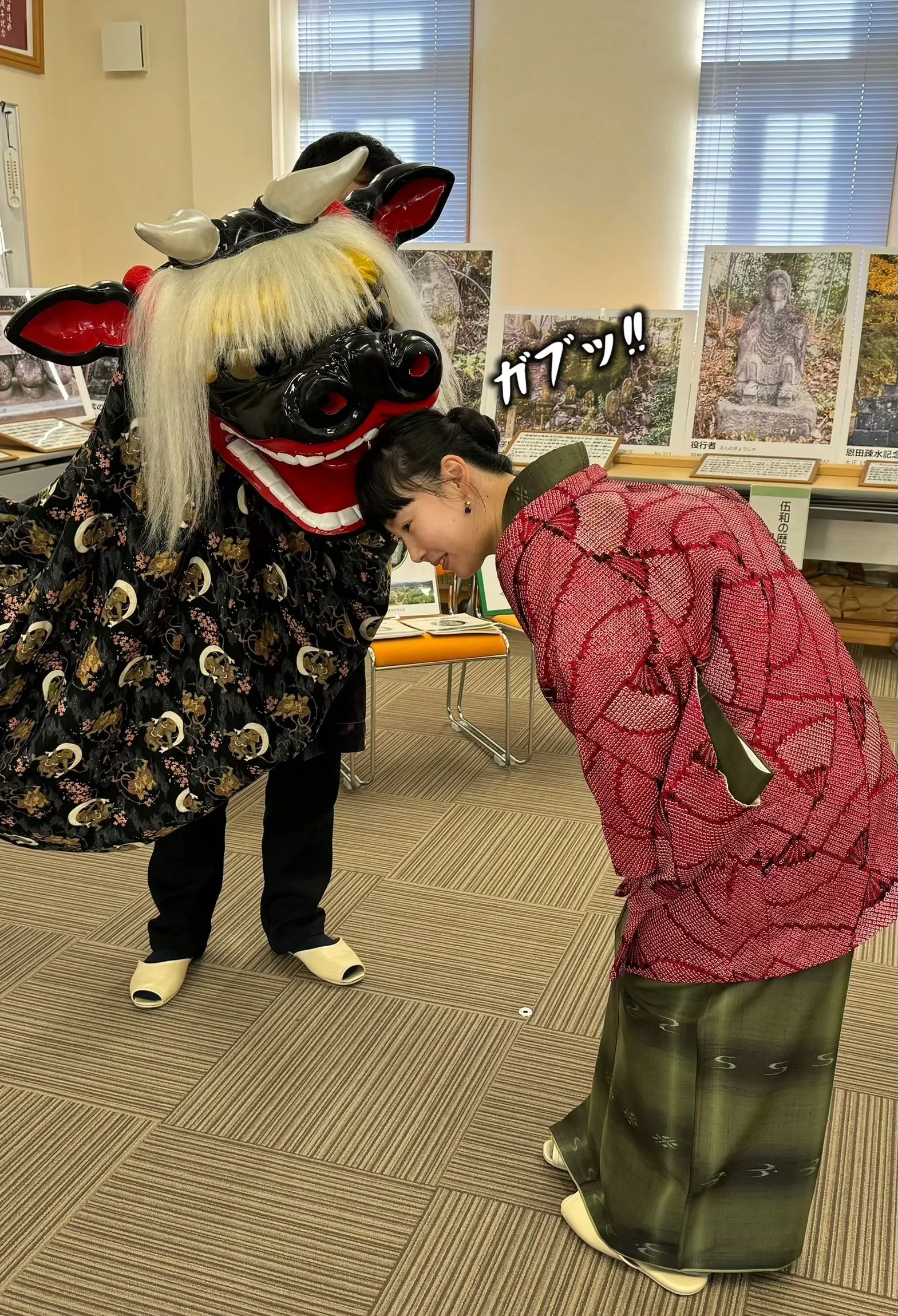 写真はそこで出会ったお獅子ではなく「阿智黒丑舞」の子丑さん、しっかり噛んでもらって厄払い、五穀豊穣...良いことがありそうです。
