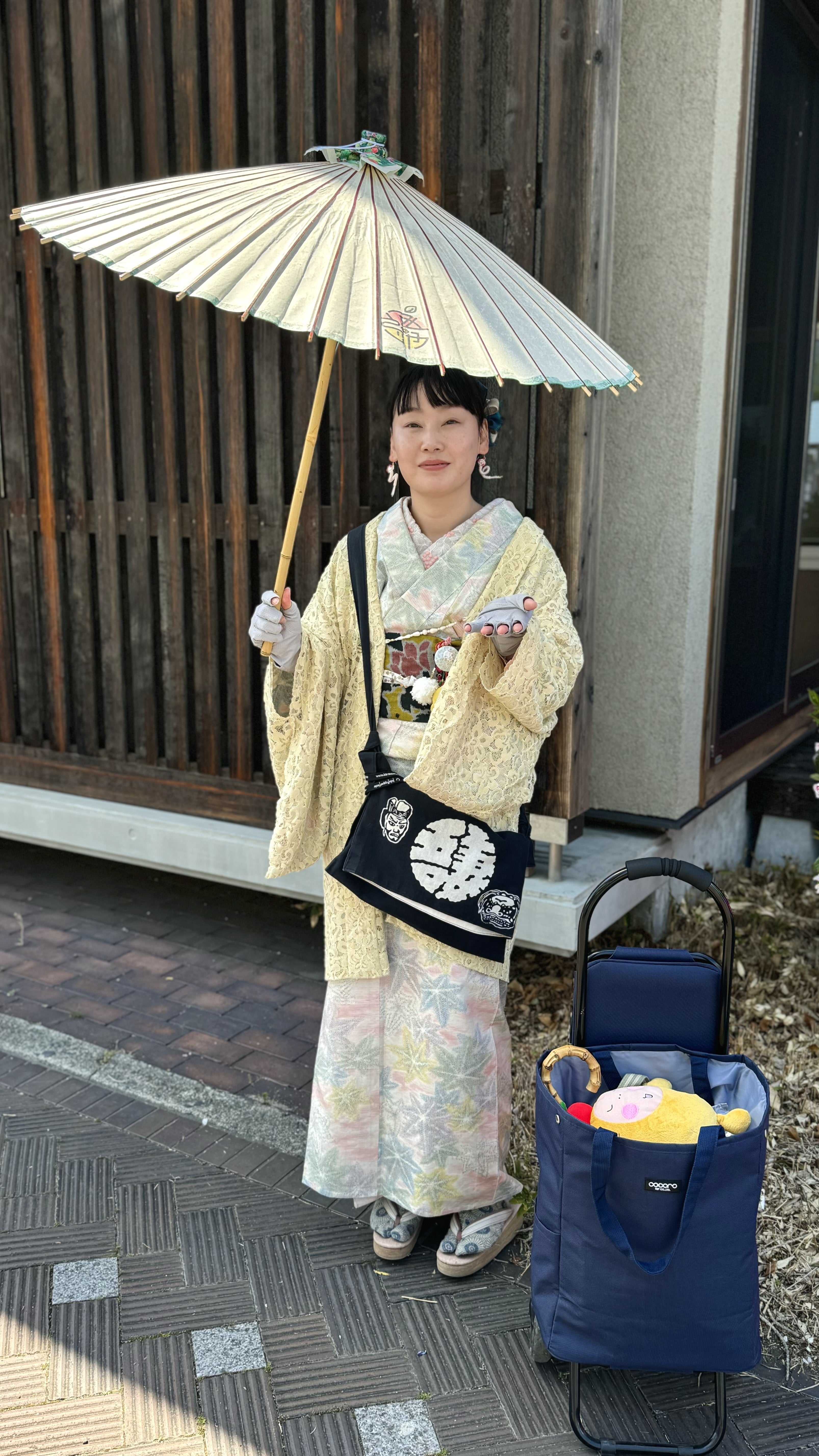 選んだ千代紙とロゴ入りの小番傘の頭紙が