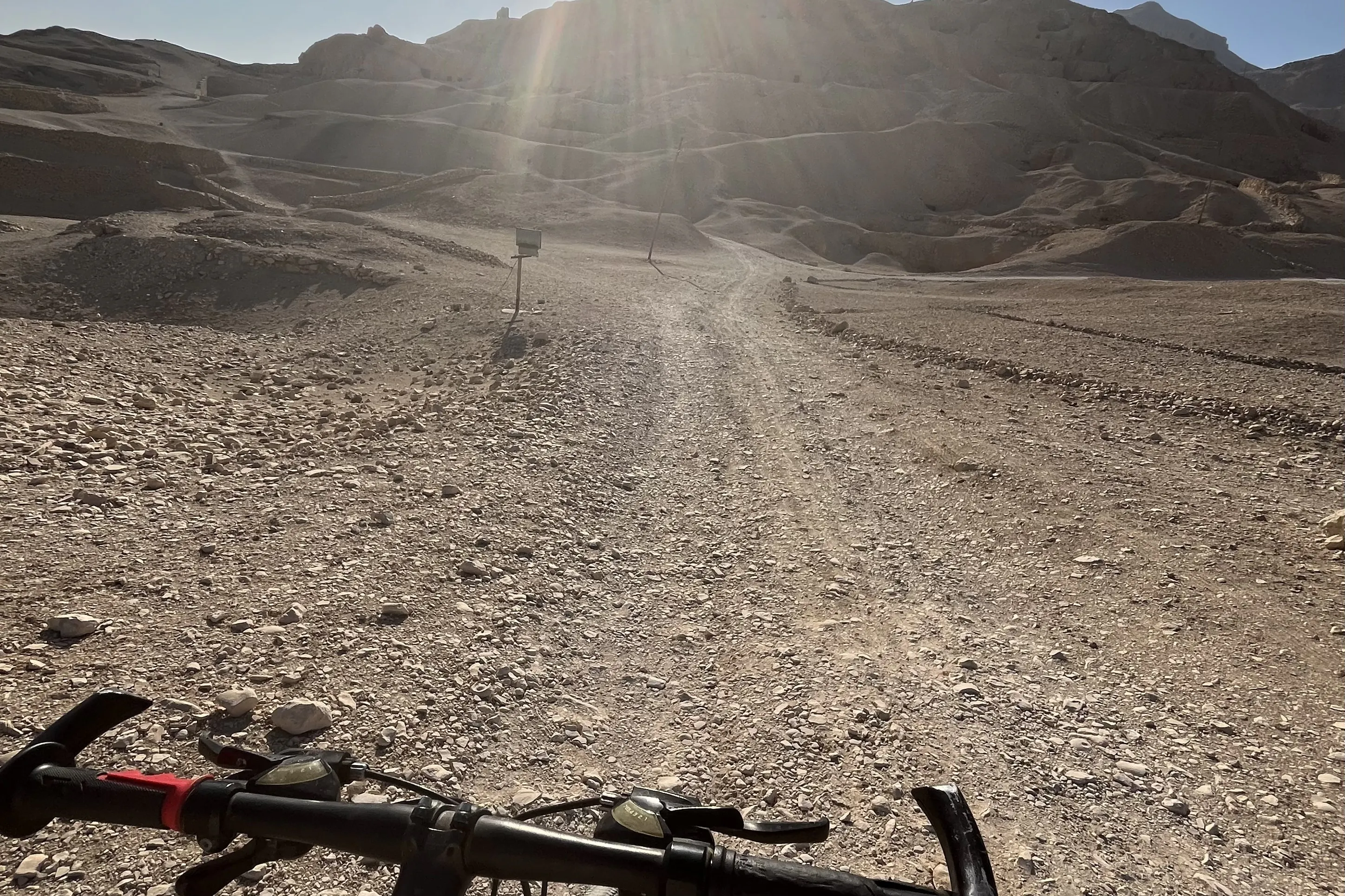 エジプトの砂漠でタクシーに乗るお金がなくて自転車を借りて爆走したり