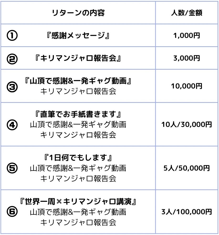 この目標を達成することで、僕の旅の最後の挑戦の費用として使わせていただきます。