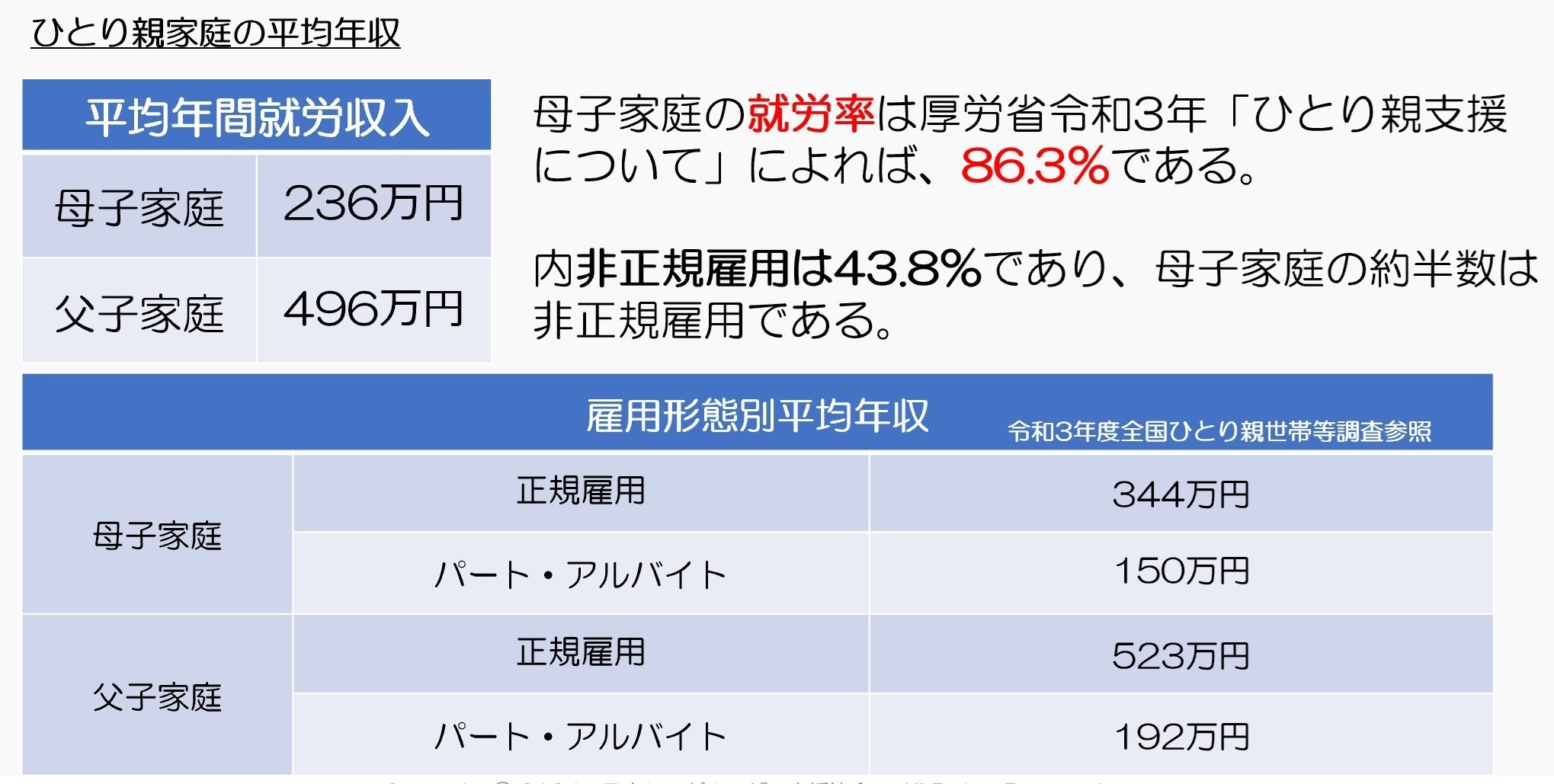 社会全体で世帯主であるシングルマザーが、パート勤めなことに疑問を持つことがあまりありません。