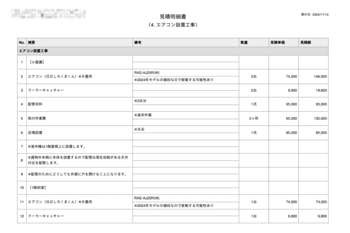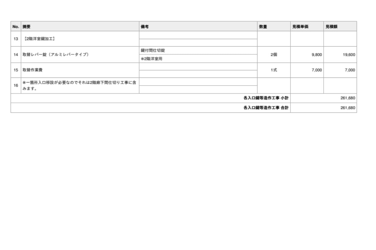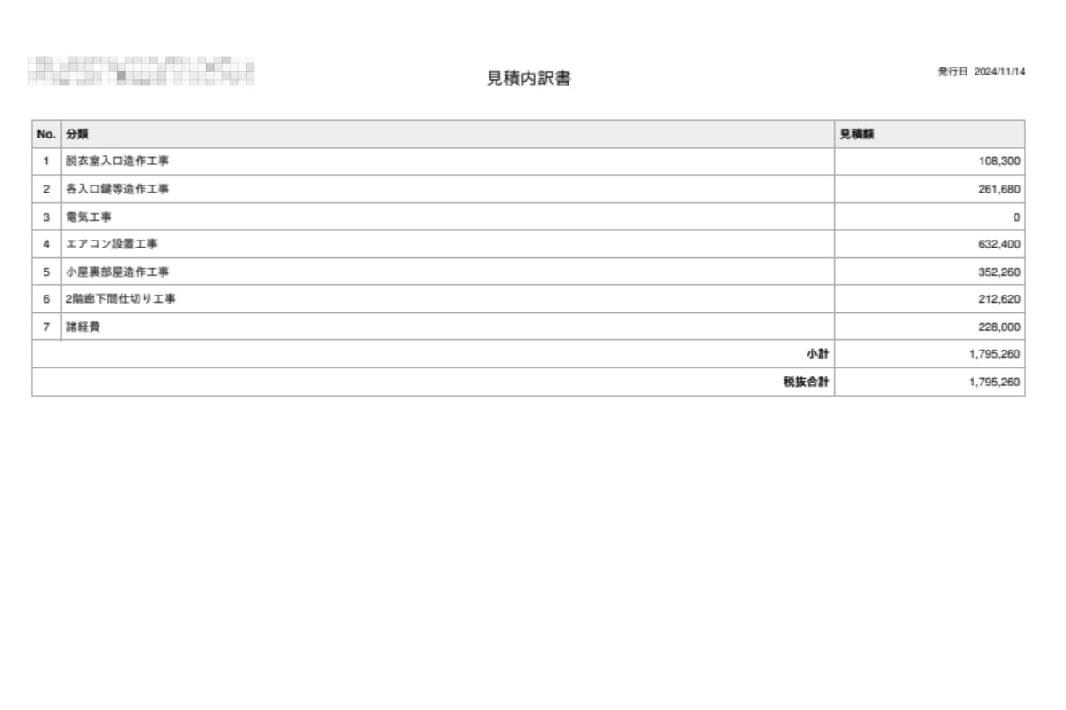 このリフォームを進めるにあたって必要な費用が以下の見積りです。