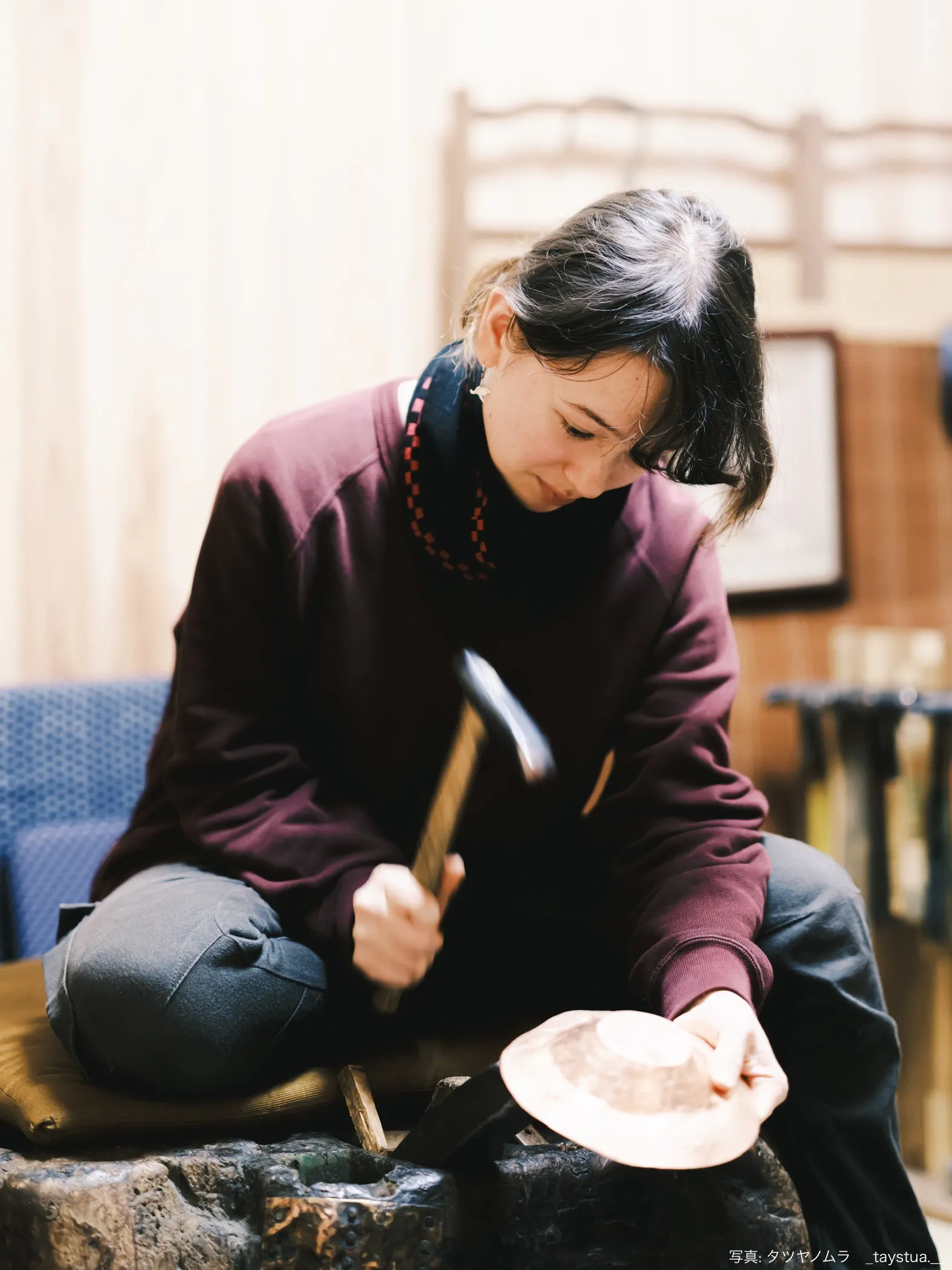 一枚の金属の板を叩いて形を成形していく鍛金という技法を用いながら商品や作品を作っています。2023年の5月に三条市に弟子入りのために移住し、三条で生活している中でいろんな方と出会い、交流していくにつれて、ここにいる作家や職人が自由に表現でき、交流できる拠点をつくってみたいと考え始めました。