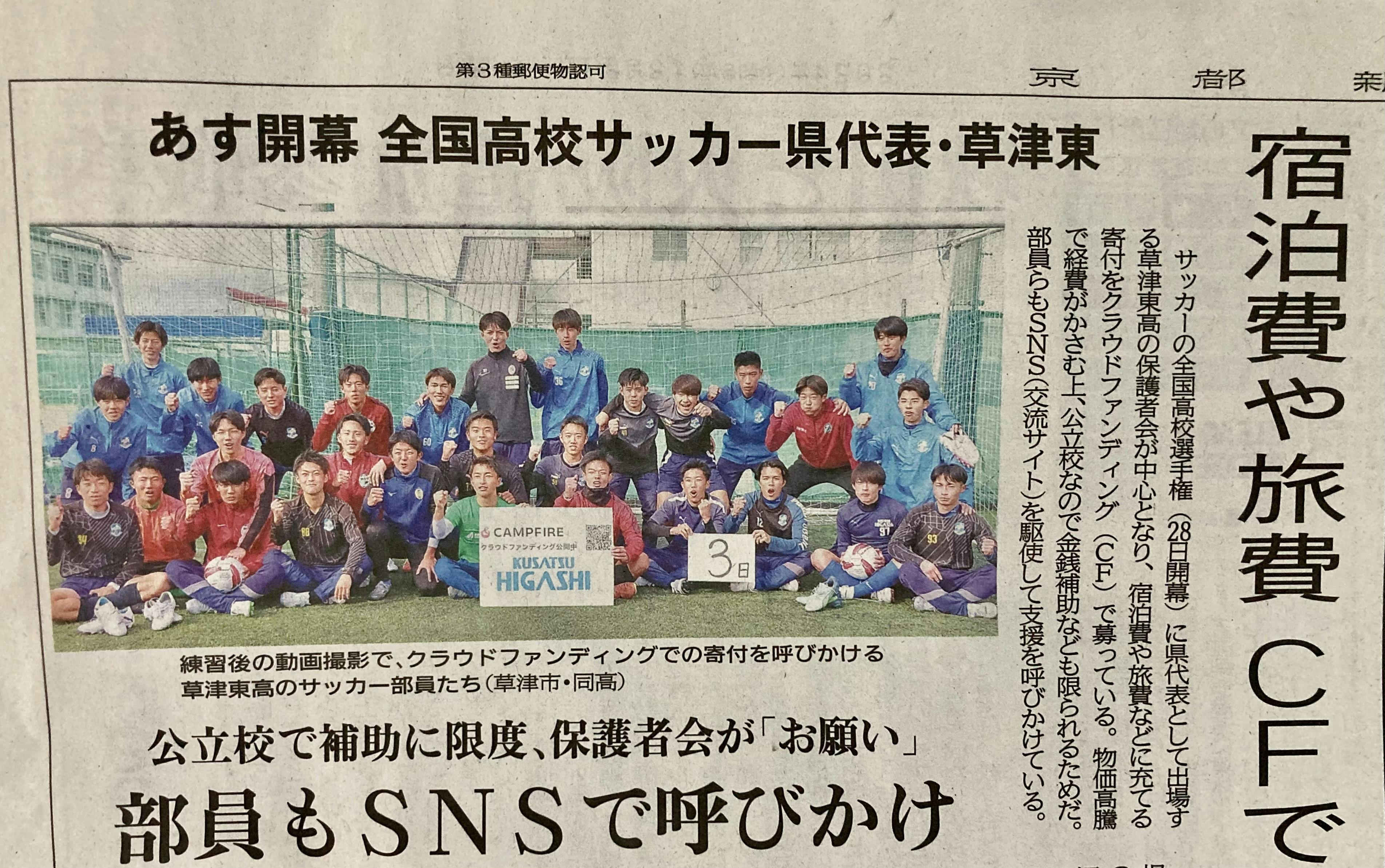 2024/12/27 12:57引用:京都新聞さん12月27日朝刊京都新聞さんに取材していただき、本日の朝刊に掲載されました!子供達は26日に出発しており、28日に開幕式を迎えます!クラファンもあと36時間を切りました!いま一度、周りの顔見知り・知人・友人・ご親戚・職場の同僚など、少しでも草津東高校サッカー部をご紹介していただけるとありがたく思います!どうぞ、よろしくお願いします! もっと見る