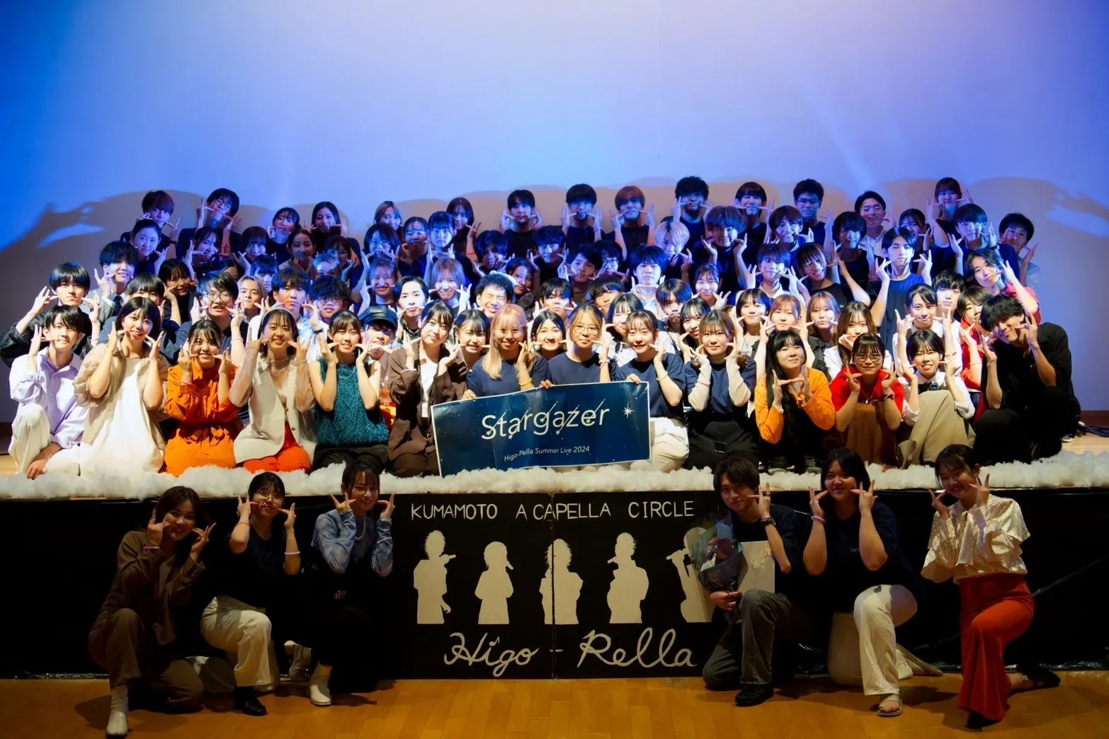 一昨年から、従来のサマーライブ・ウィンターライブを経験した人が少ない中でさまざまな試行錯誤をしてきました。昨年度は無事にサマーライブ【Fly High】、ウィンターライブ【Reveal】を開催でき、10周年記念ライブでOB・OGの先輩方と同じステージに立つ機会も頂きました。そして、2024年の8月にはサマーライブ【Stargazer】の開催に漕ぎつけました。今回のウィンターライブでは、これまで中心となって活動されていた先輩方からバトンを受け取り、1,2年生を中心に「次世代が作るHigo-Pellaの今までとこれからをつなぐ最高のステージ」の実現のため日々奮闘しています。ステージに立つ演者の皆さんは、大学の授業の合間を縫ってパフォーマンス練習を重ねたり、運営に関わる皆さんも何度も会議をしてより良いステージになるよう各部署と話し合ったりしています。今回のウィンターライブで、アカペラのワクワクやドキドキを存分に感じていただけたらと思います。支援していただいた資金は機材の購入等に使わせていただきたいと思います!
