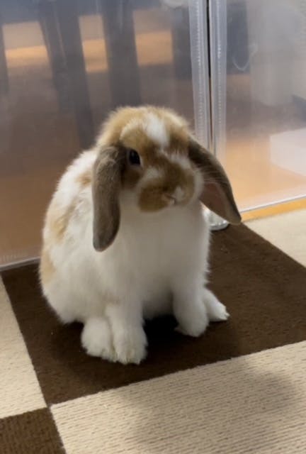 娘が飼ってるうさぎさん♡ZOOMの間にテーブルの上にあったお菓子を床に落としてガジガジ。思わず「すみません、ちょっとお待ちいただけますか?」とお断りしてお菓子を取り上げました。ちなみにお菓子はうなぎパイでした~(笑)