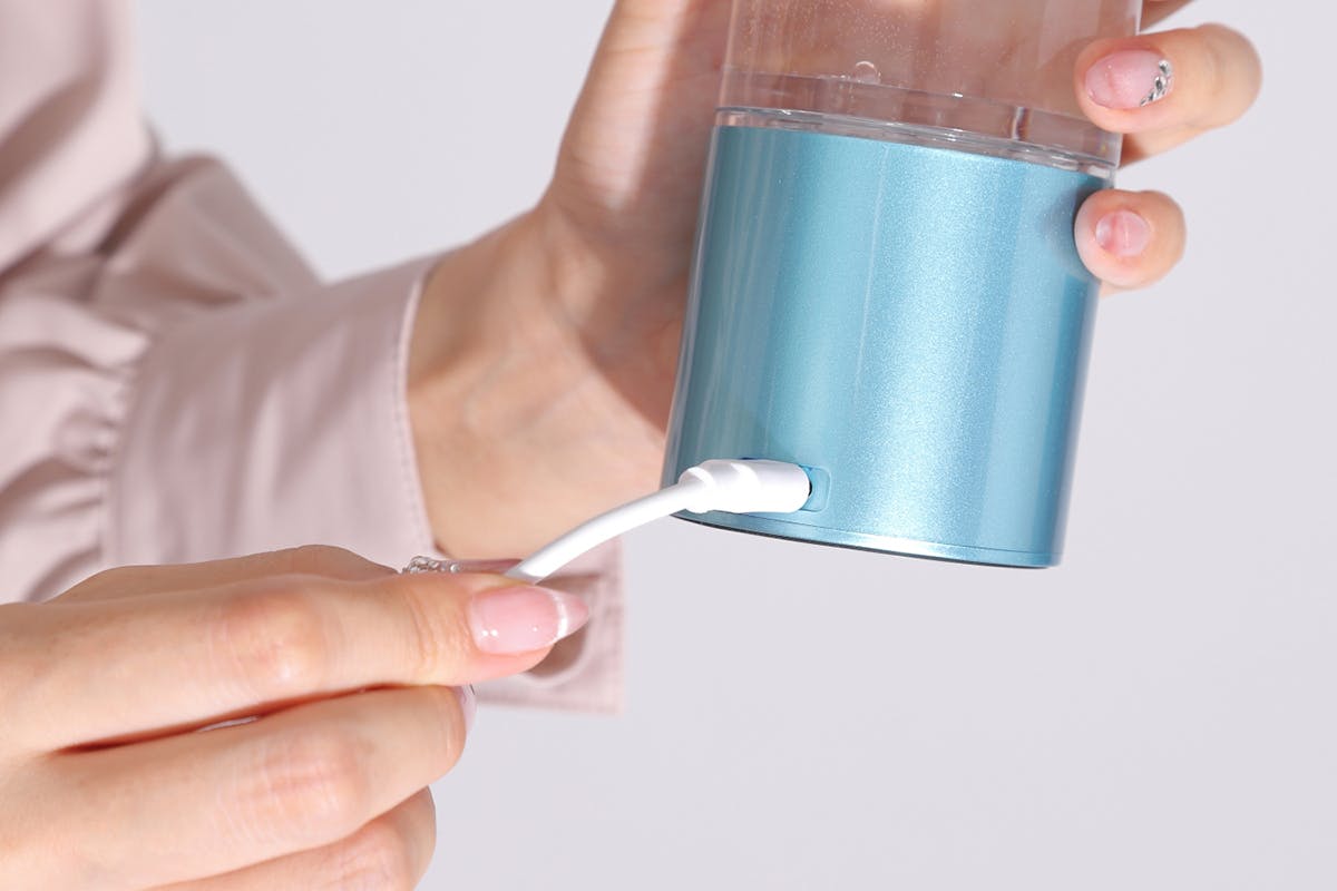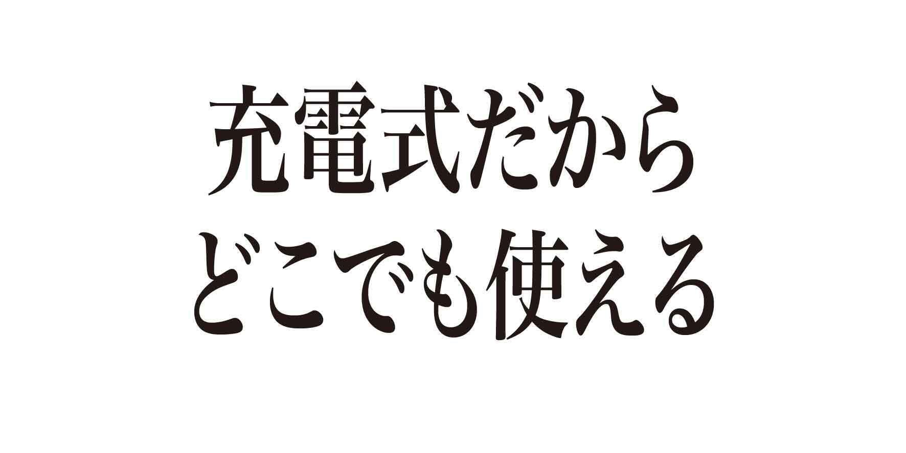 充電式なのでコンセントに繋げなくてもどこでも使うことができます。1回の充電で約20回使用可能です。1日に3回使うとして、1週間程度は充電なしで使用できる計算になります。充電時間は3-4時間ですので、就寝時に充電しておけば、常に使える状態を維持できます。