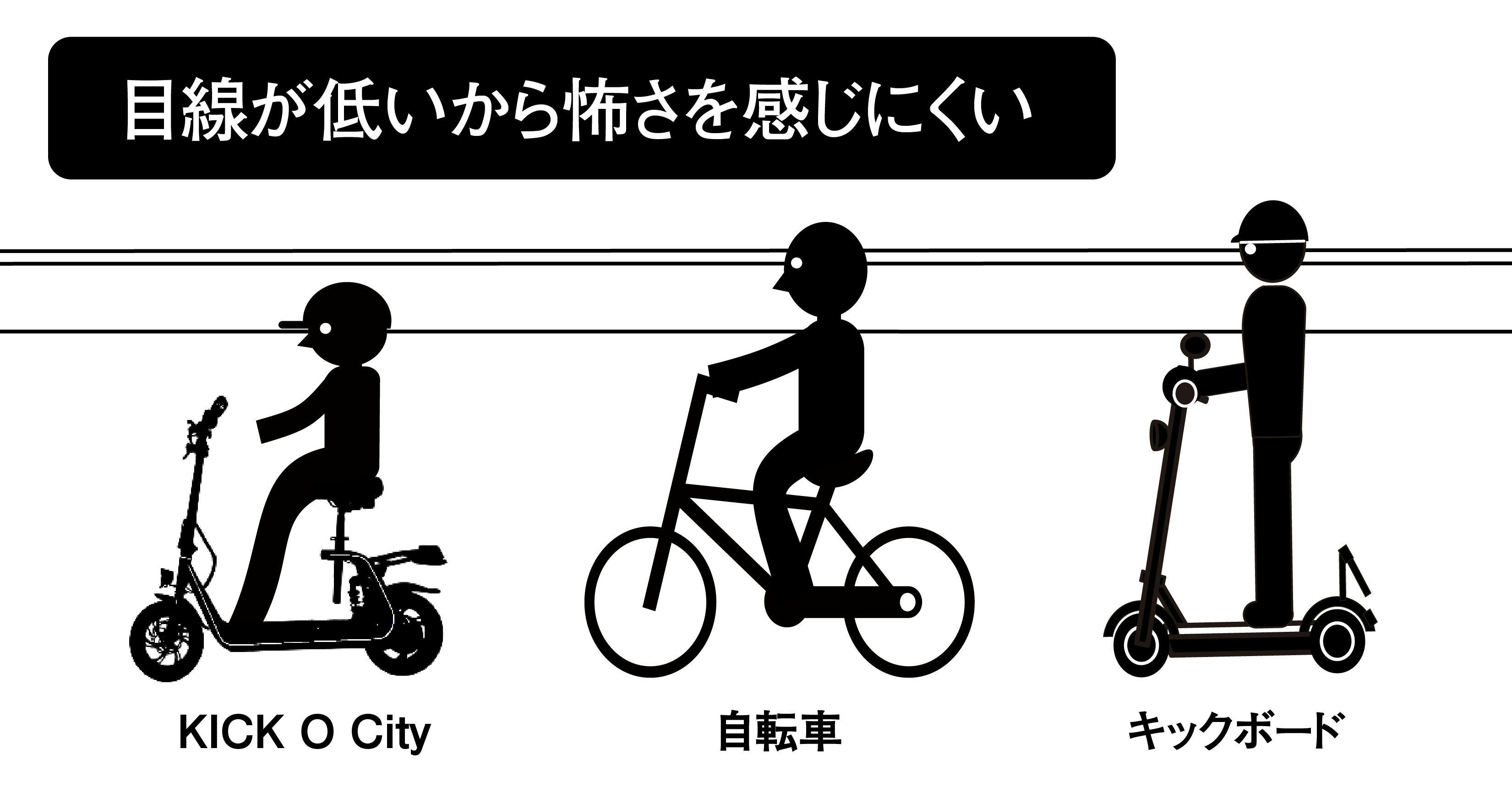 座って乗れるので、自転車感覚で安心。複雑な操作も不要です。