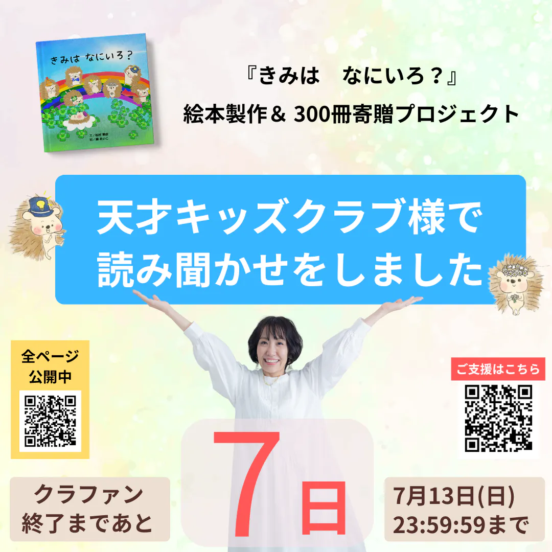 少し前に天才キッズクラブ様で書籍「きみはなにいろ」に収録されているブックインブックの絵本の読み聞かせをさせていただきました!