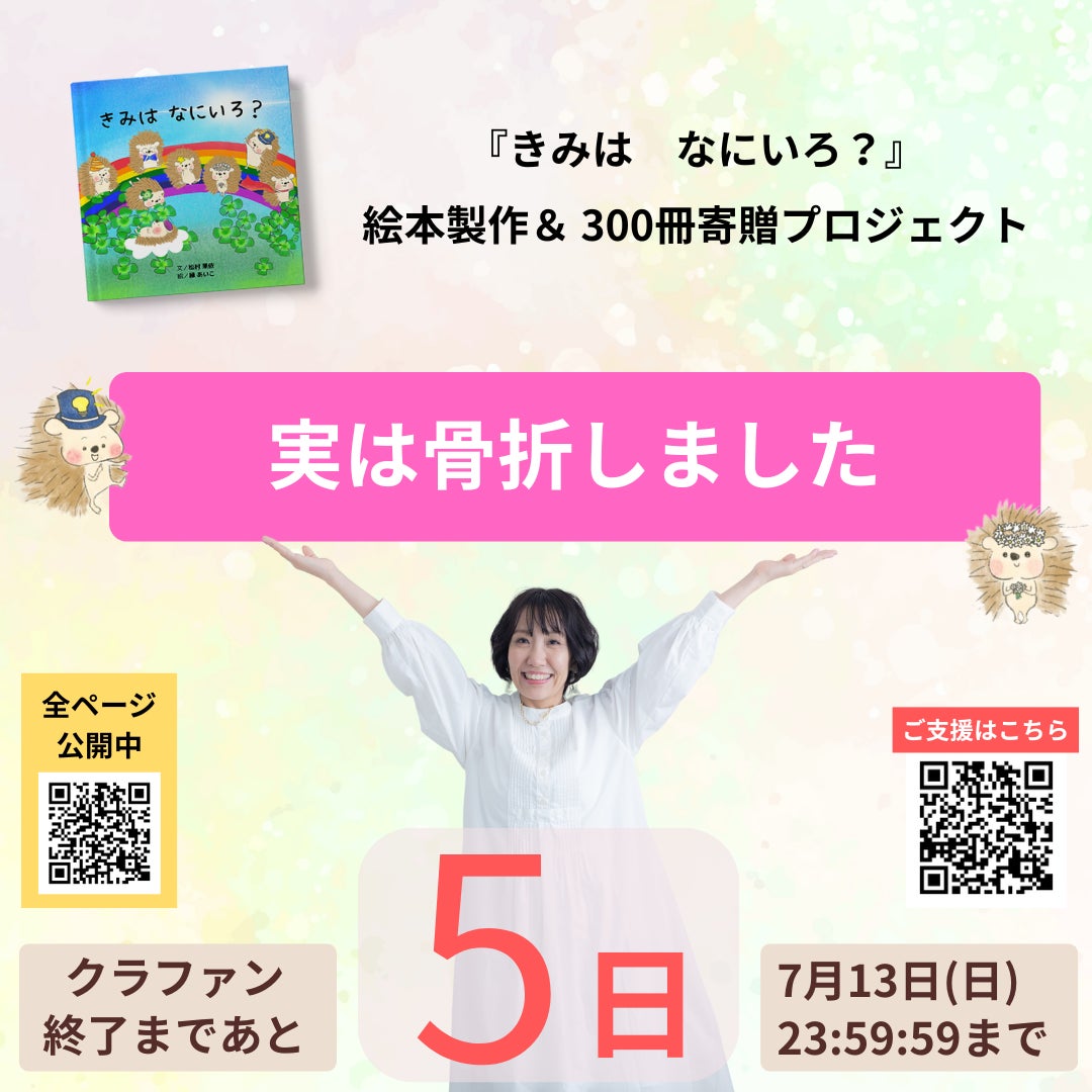 「きみはなにいろ?」で可愛いハリネズミを描いてくださっている、いのちのお絵かきセラピスト 縁あいこさんから絵本をご提供いただきました。本日も1冊ご支援されまして残り3冊となっています。