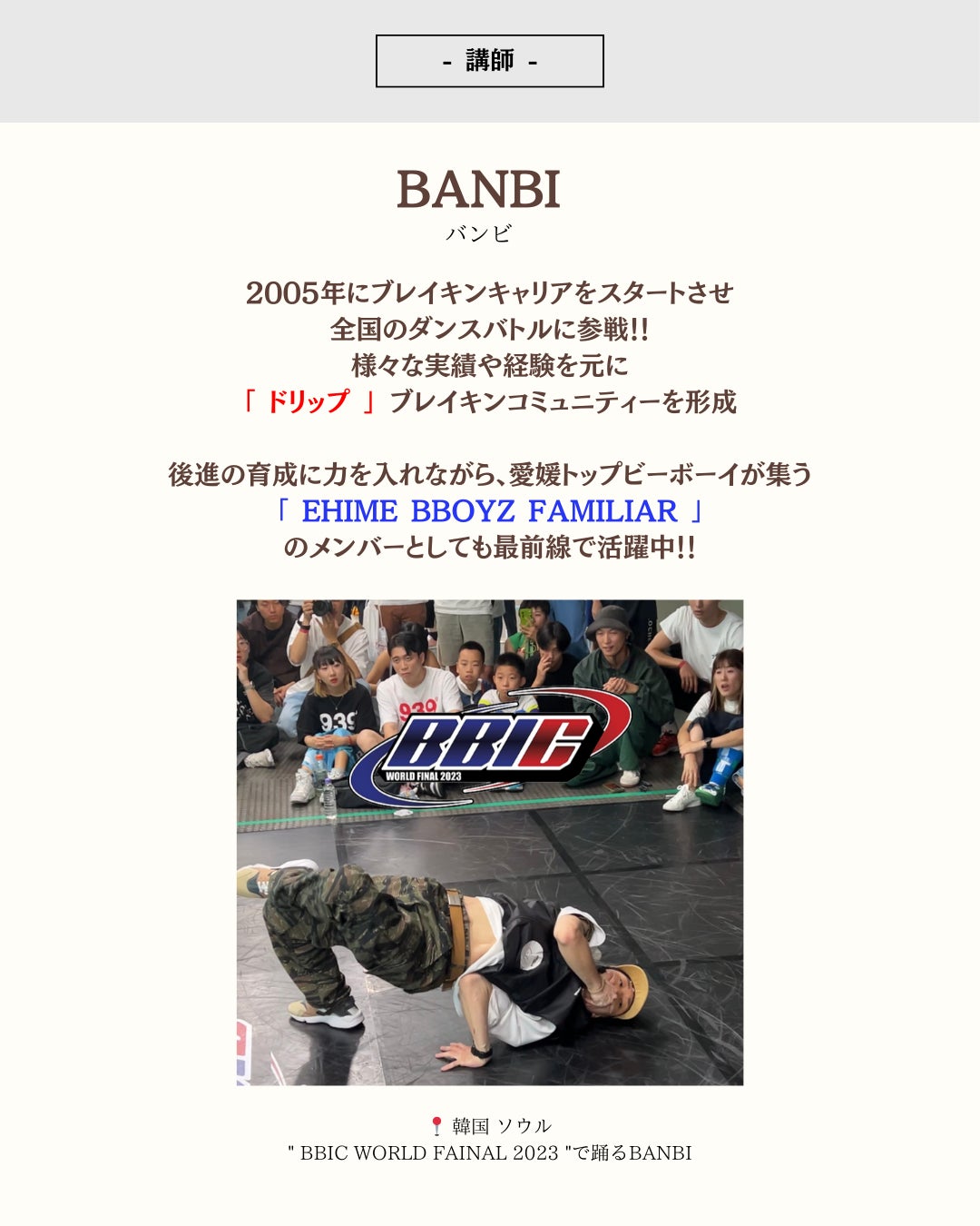 「ドリップ」ブレイキンスタジオ代表のバンビです!!