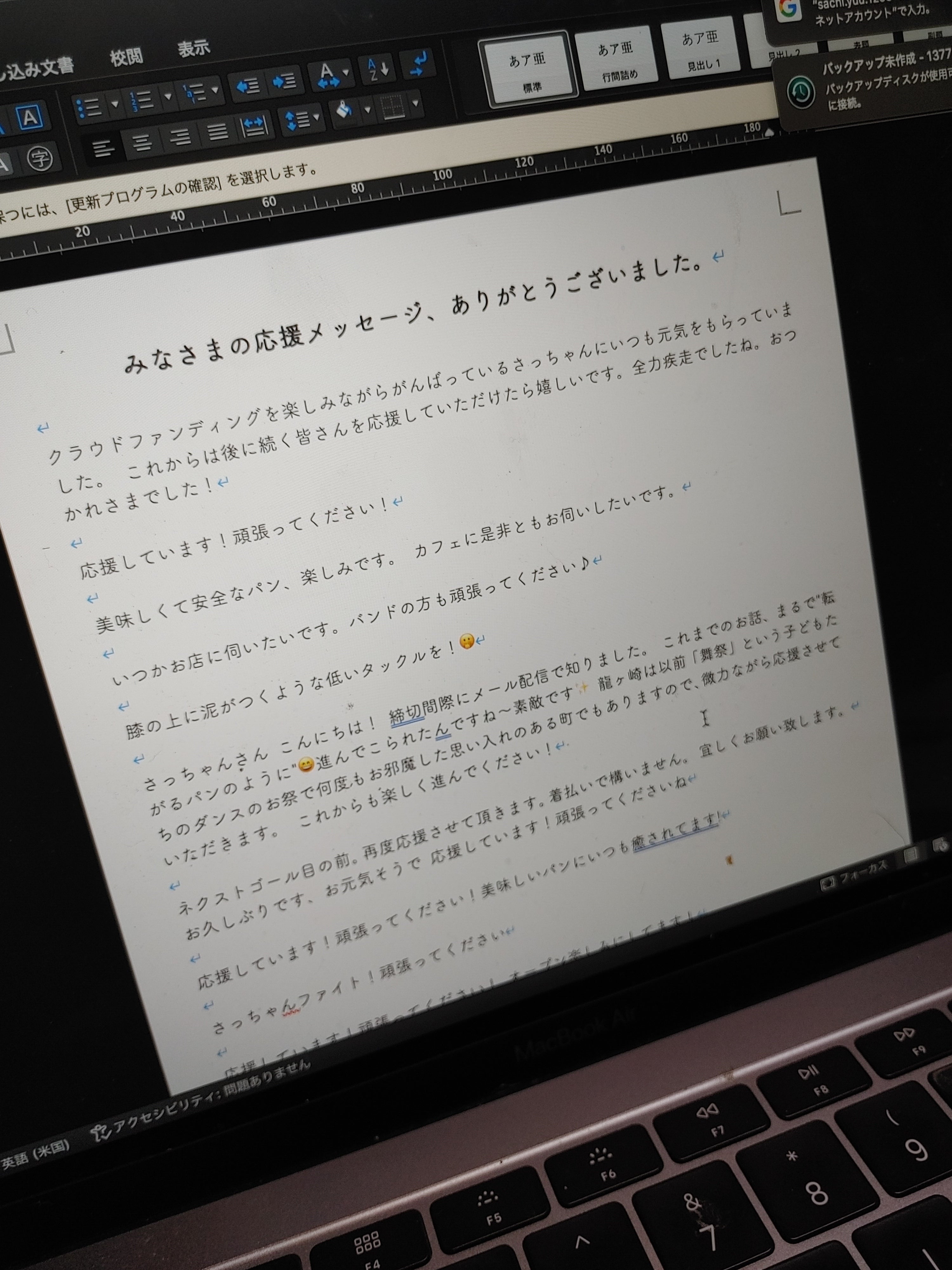 皆さまからの温かい応援メッセージを残したくて。