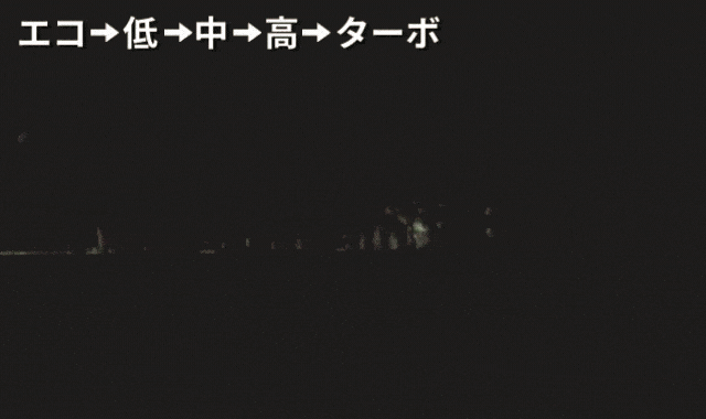 ボタン一つで(エコ→低→中→高→ターボ)モードへ順次切替え