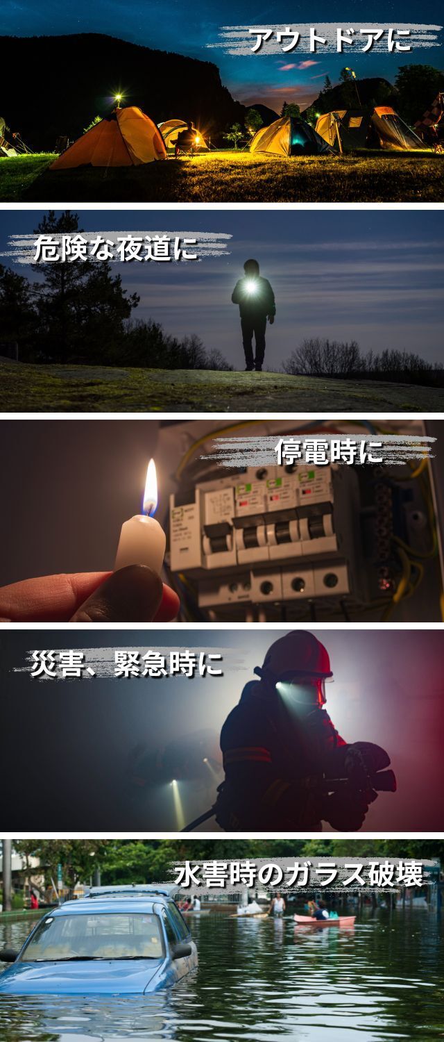 先端のガラスブレーカーで車からの緊急脱出や、防犯時の護身道具としても役立ちます。