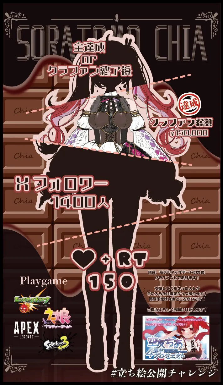 配信でもっと感情爆発させて、ゲームの世界を駆け巡る、表情豊かな空友ちあをだして、元気を与える存在になりたいです。