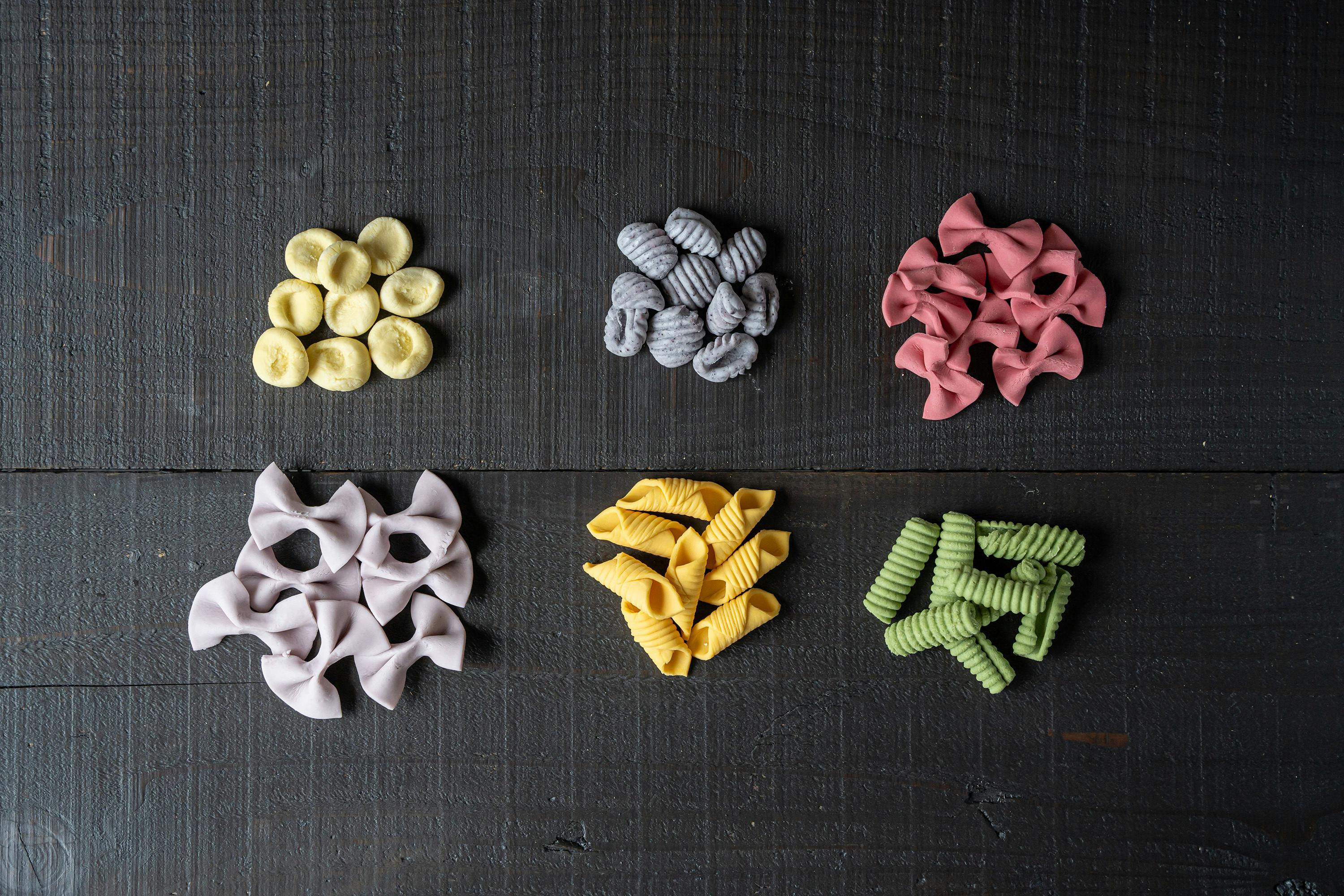 私の作るパスタはショートパスタで、色とりどりのカラフルな色をしていて、いろんな形をしています。