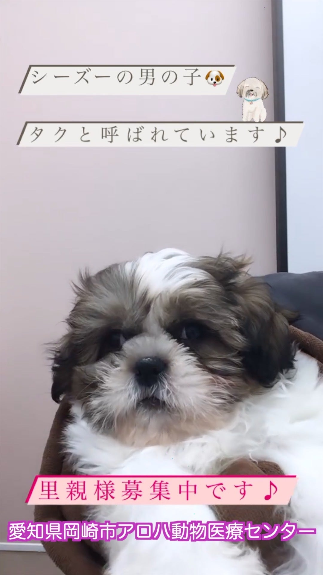 写真の子は里親募集中のシーズーの男の子タク君です。