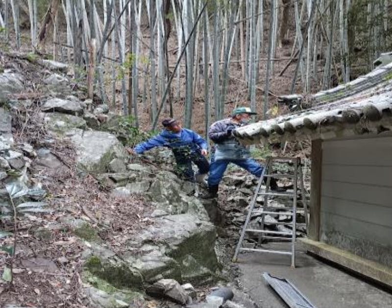 大師堂の左奥の崖から度々岩石が崩れ落ち、大変危険な状態でした。