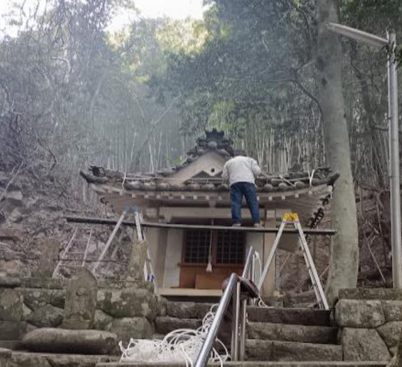 霊府堂の屋根も、ずいぶん前から傷みズレていました。