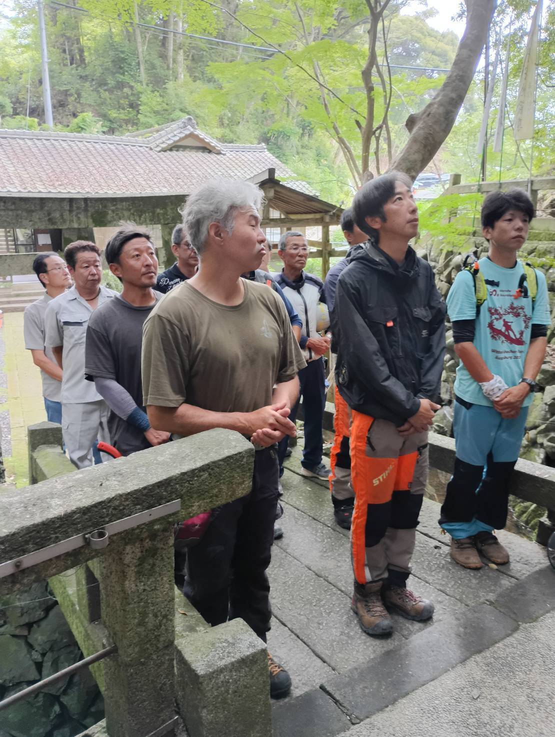 屋根の葺き替えを終えた本堂(不動堂)令和 6 年の 7 月 16 日に本堂の雨漏りを見つけてから、一年後の令和 7 年 7 月 16 日に、 屋根の葺き替え完成を祝う祈祷式を執り行いました。 屋根の修繕と木の伐採に必要な資金が、 クラウドファンディング・瓦寄進・寄付金を通し約 5 か月で集まり、4 月からの工事着工から この日を迎えることができました。本堂の鬼瓦ありがたいことに、従来の ものを修復して使うことができました。 鬼瓦は、魔除け・厄除けの意味が込められて いますが、雨水の侵入を防ぐ役割もあります。20 メートルを超す木の上での作業 木の伐採をしたことで、不動さん全体が 明るくすっきりしました。参道に降り注ぐ 光の量も増えました。
