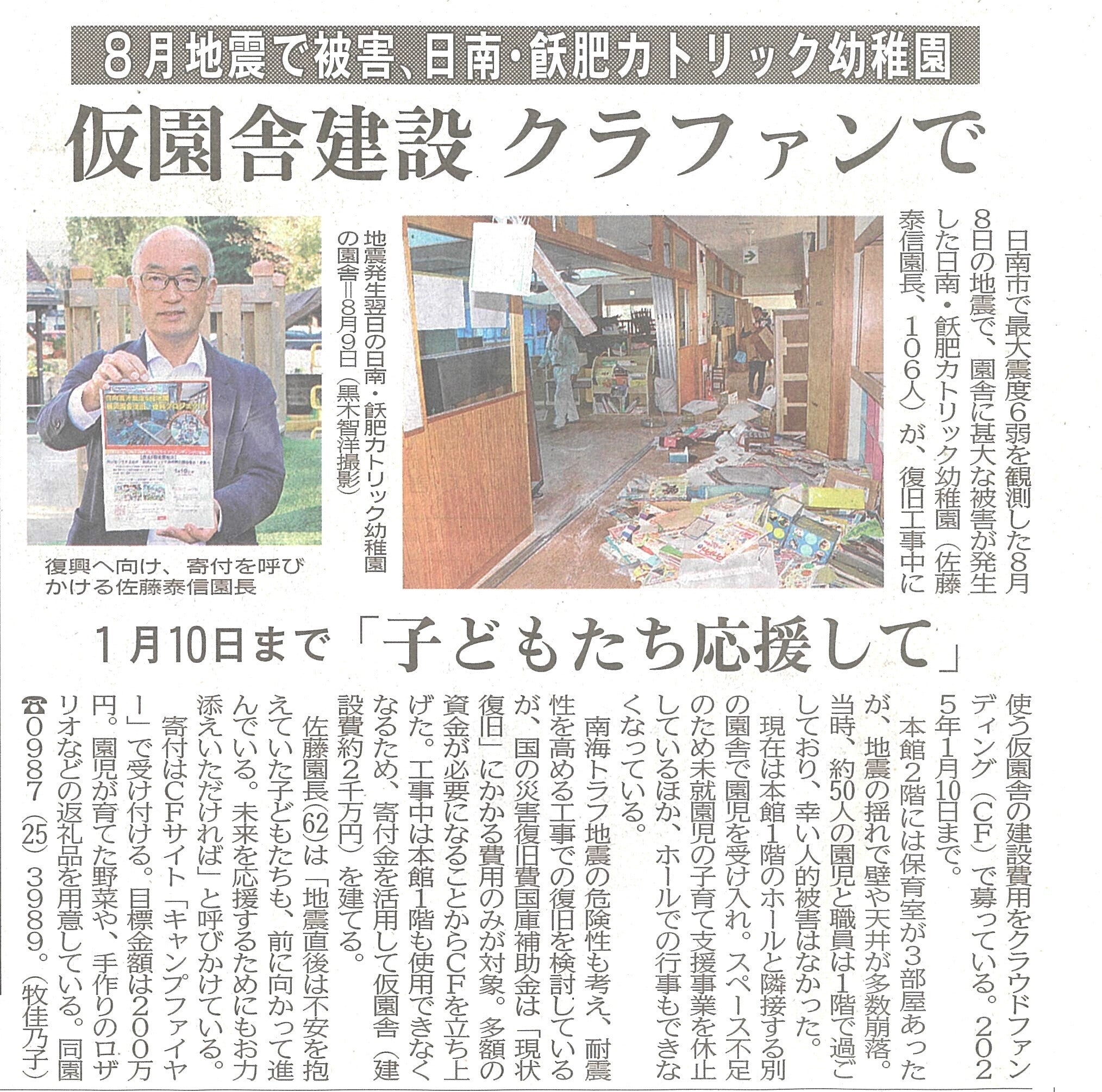 6日のNHK様と地元民放UMK様に続き、9日には同じく地元民放のMRT様にも取り上げていただきました。そして今朝は地元紙宮崎日日新聞社様にも!関心をもってくださり大変ありがたく思います。