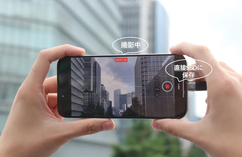 iPhoneに繋ぐだけで自動認識され、iPhone 15 ProおよびiPhone 15 Pro Maxで撮った大容量のProRes動画を外付けストレージに直接保存します。これにより、iPhoneの容量を気にせず、大切な思い出を高品質の動画で長期保存できます。