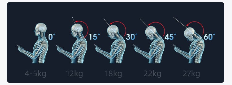 これは、ボウリングのボールを毎日何時間も首で支えているのと同じ負担です。