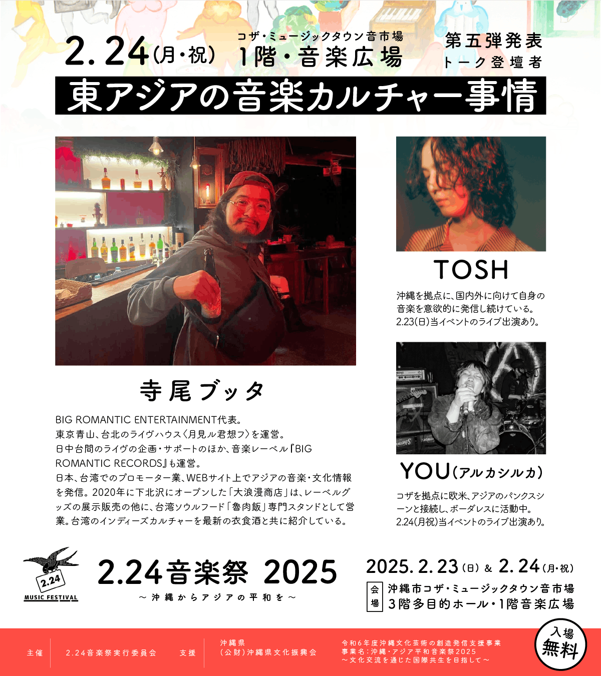 2月24日(月祝)に開催するライブとトークの出演者を発表しました。