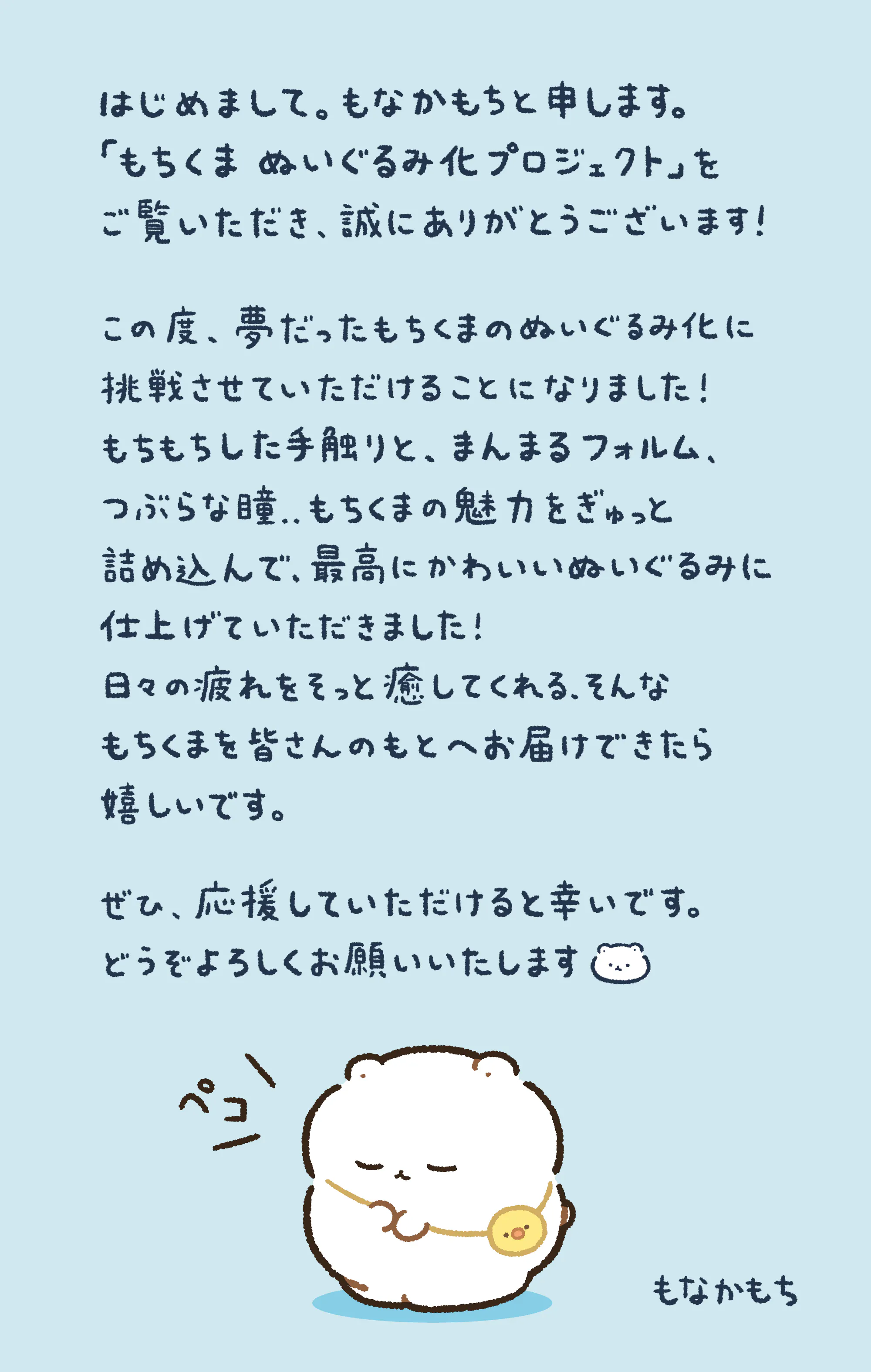 イラストレーターもなかもちが描く「もちくま」がぬいぐるみ化に挑戦します!