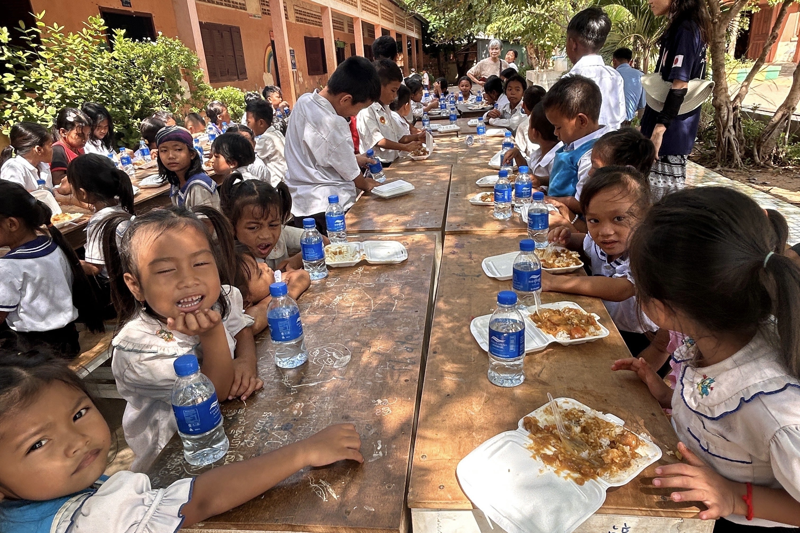 内戦後、カンボジアの人口は著しく増加しました。多くの小学校では就学児童に対して教室や教師が不足しているため、午前(7時から11時)と午後(13時から17時)の二部に分け、生徒を入れ替えて授業を行っています。例えていうなら1.3.5年生は午前の授業、2.4.6年生は午後の授業というような具合です。