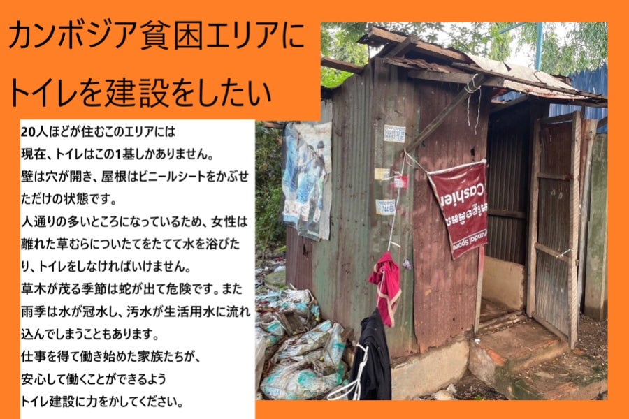 ここで暮らす人々が安心して生活ができるように、そうしてこの先、自立を目指していけるように、このエリアのトイレ建設に力を貸してください。