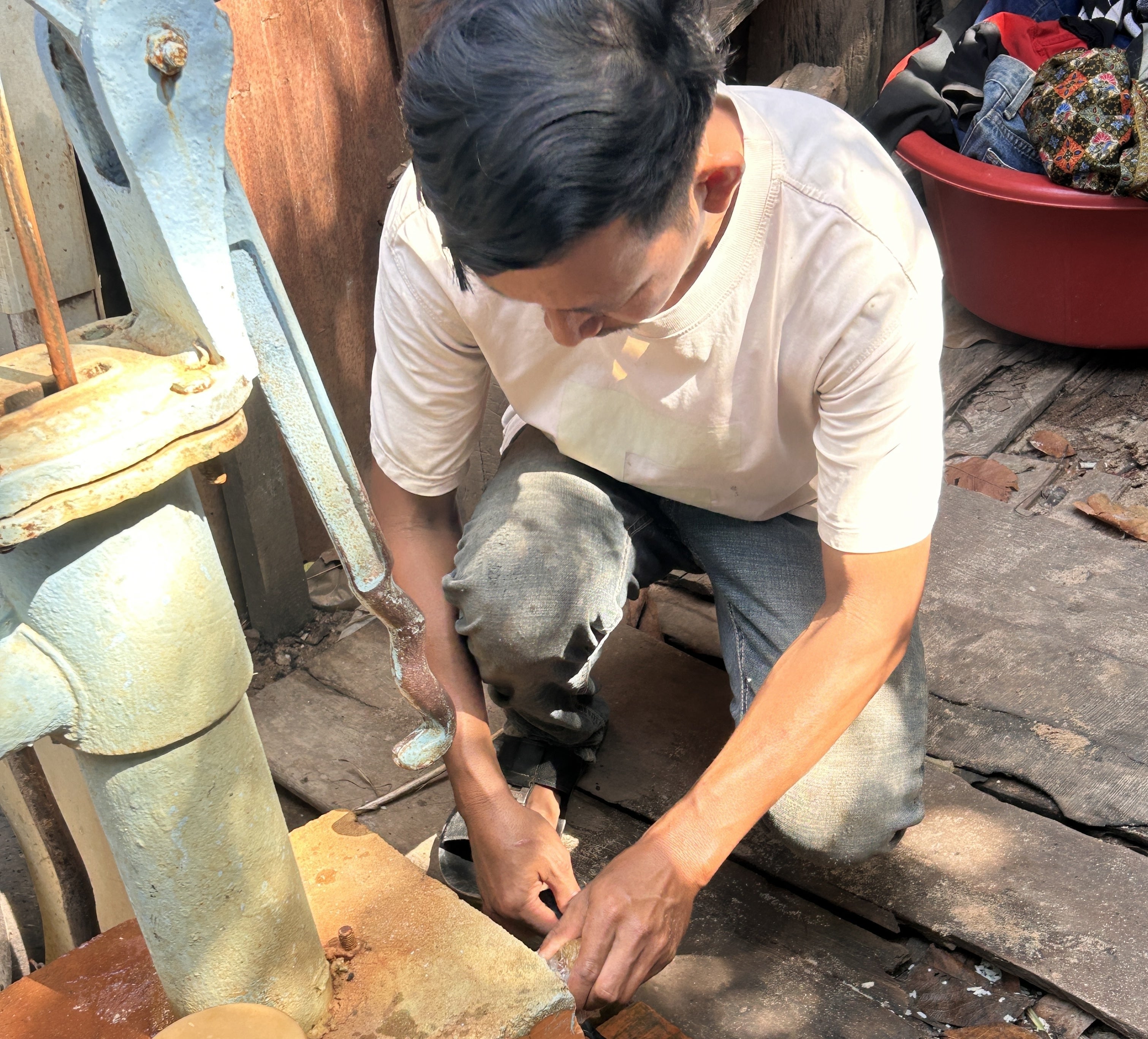 みなさまトイレ建設のご支援ありがとうございます。先日ウォータポンプの設置工事の下見をしに行きました。今回担当してくださるのはシンさんです。私が理解できるようにゆっくり話してくれます。井戸の位置をみて、ポンプの設置が可能か確認をします。確認しながら丁寧に井戸の仕組みを説明してくれます。 ご家族の意向も聞きながら、良い場所を検討中です。やはり、使うご家族たちが生活しやすいように作るのが一番です。 そして重要なのが、盗難にあわないようにすることです。外から丸見えではなく、隠れた位置に設置するよう何度もお願いをします。ようやく当初予定していたトイレの形に近づいたてきたような気がします。 クラウドファンディングも残り5日となりました。予算達成まであと少し、どうか応援をお願いします。https://camp-fire.jp/projects/809355/viewシェア、拡散、お気に入り登録も力になります。どうぞよろしくお願いします。
