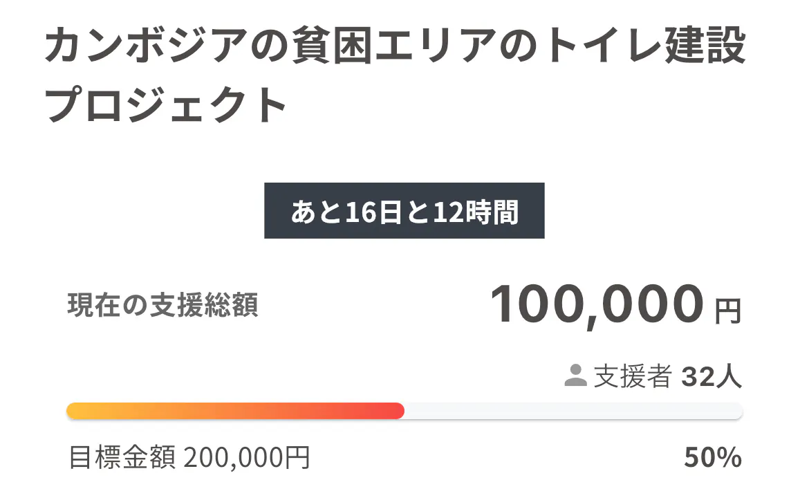 ご支援くださった皆さまのおかげで目標の半分の100,000円に到達しました。