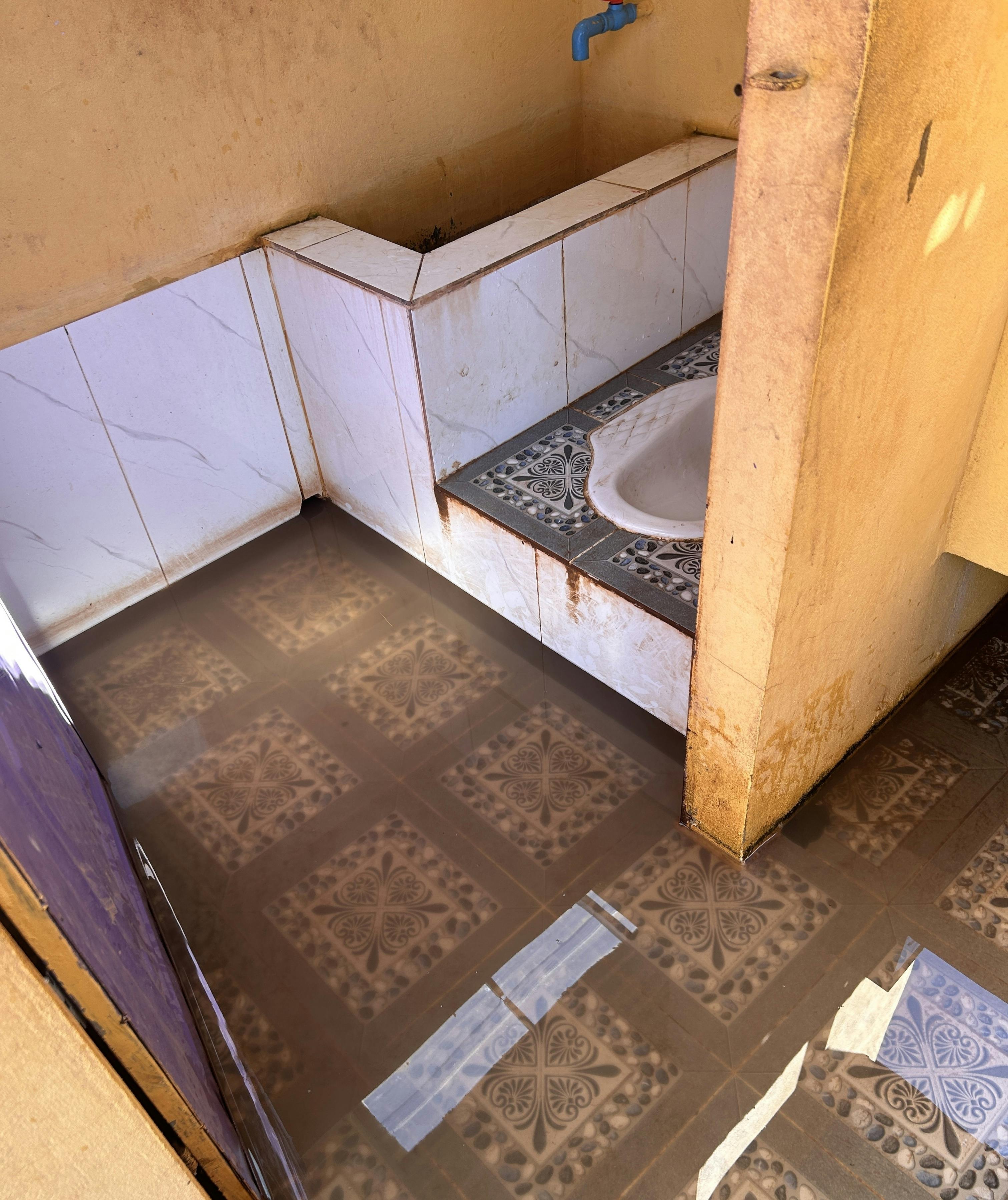 この水浸しのトイレの中を子どもたちは裸足で歩きます。足にケガがあれば感染病になってしまいます。