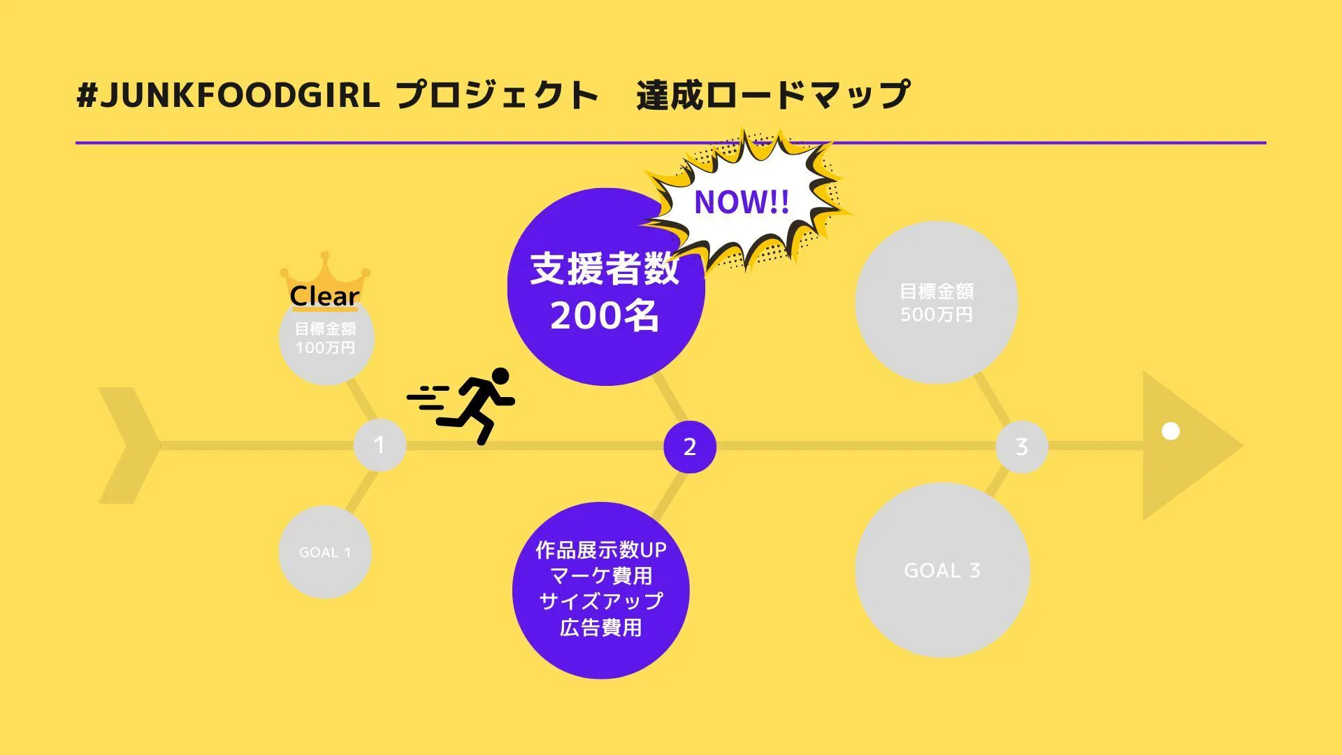 JUNKFOODGIRL個展プロジェクトは無事、開始4日で目標金額100万円を達成することができました。
