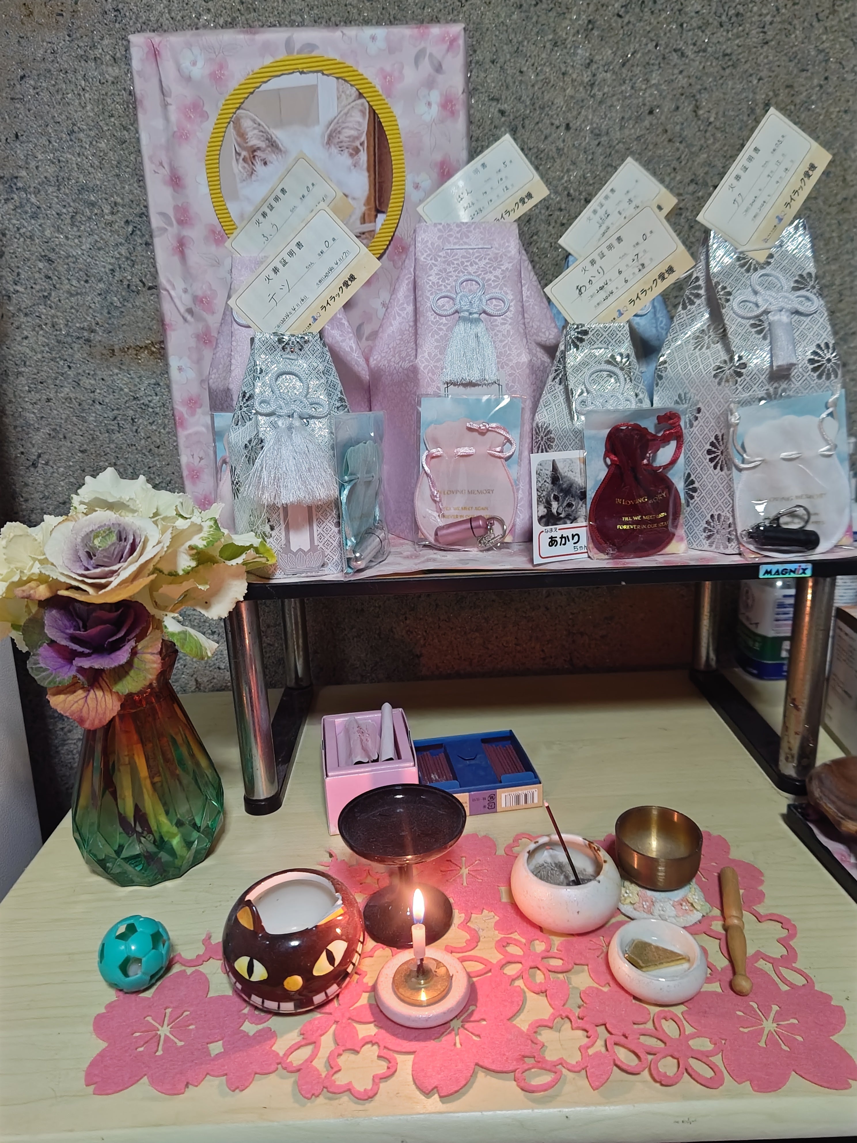 シェルターに来ると必ず、亡くなった保護猫たちにお線香をあげます。