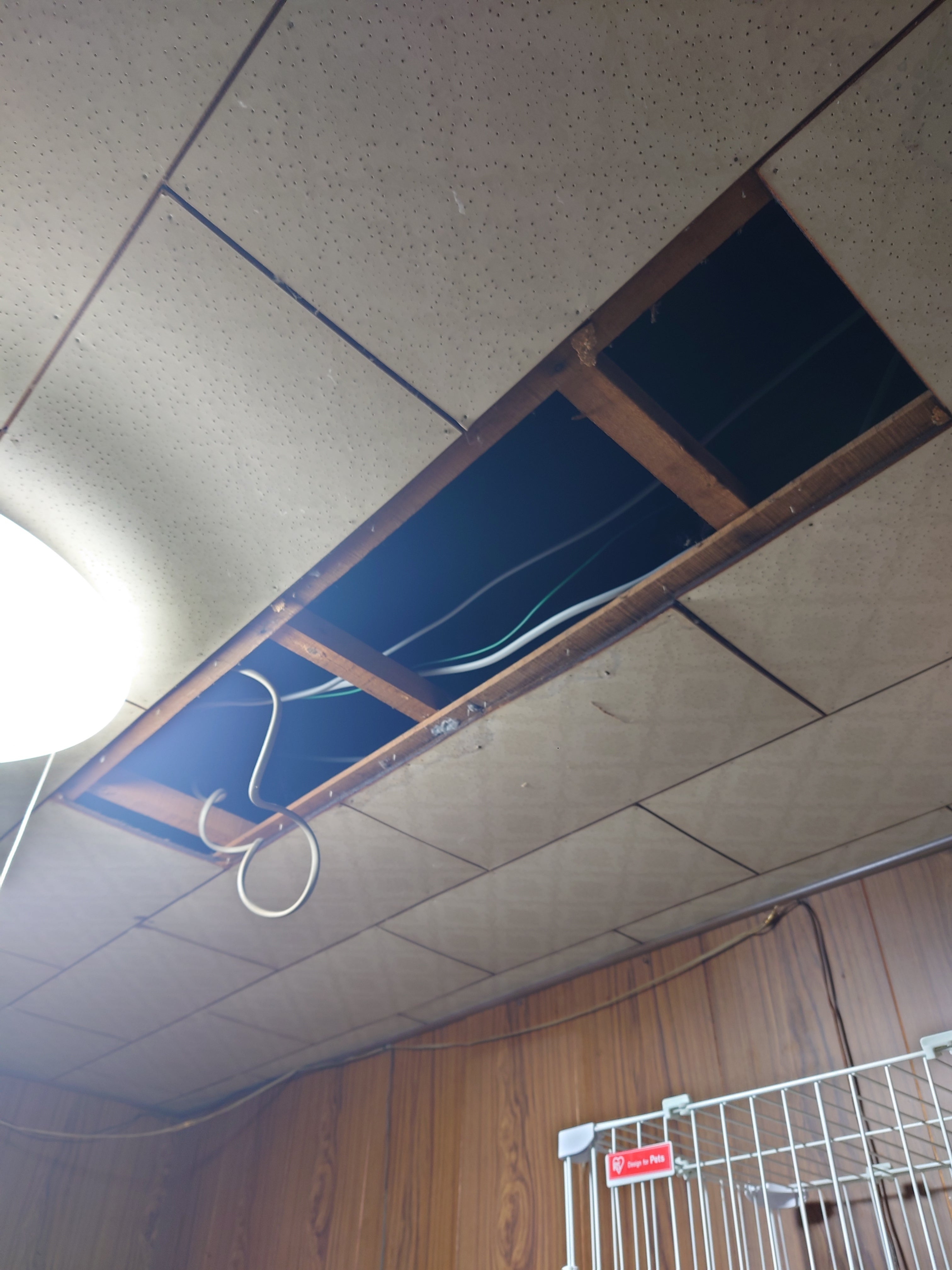 隣の部屋の天井をぶち抜いて落ちてきました。幸い怪我はありませんでしたが、早々の改修をしなければ・・・
