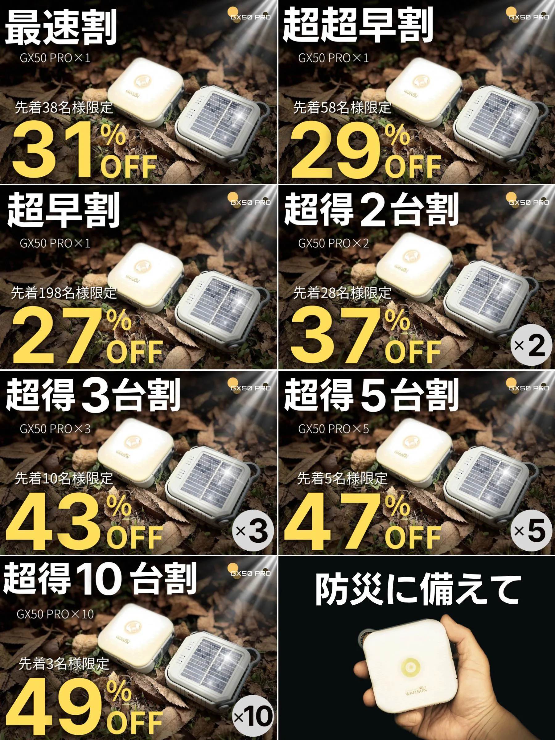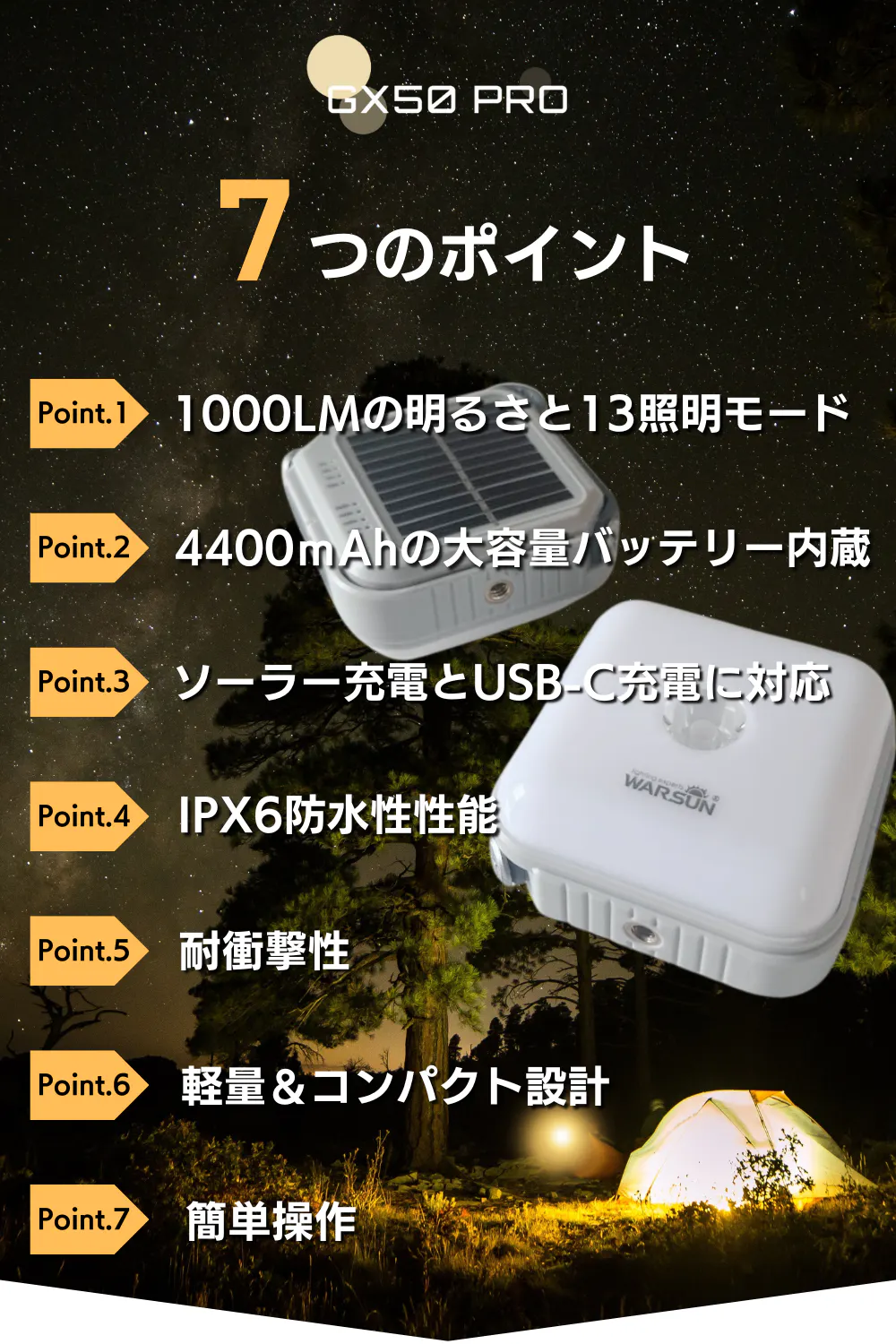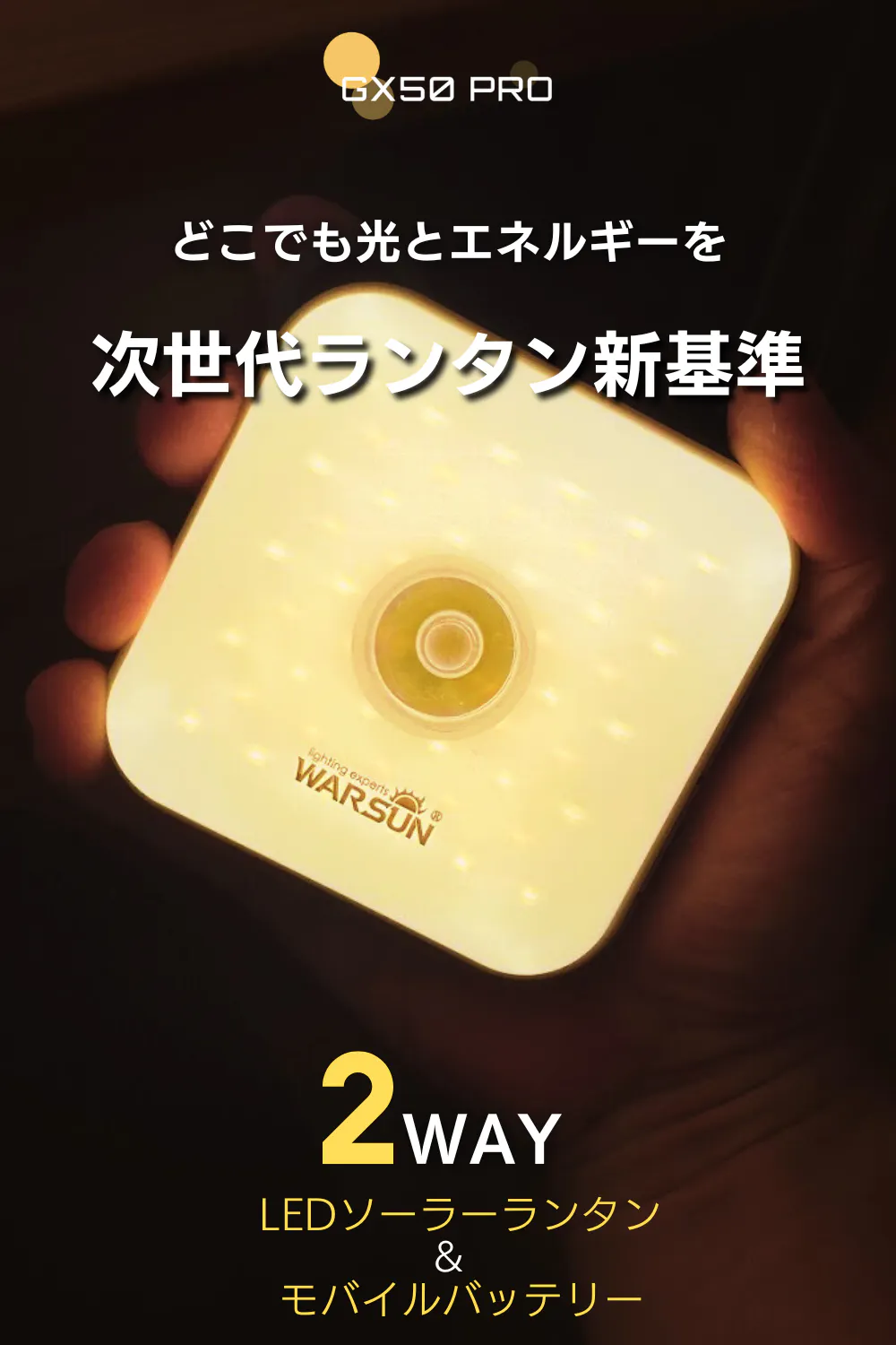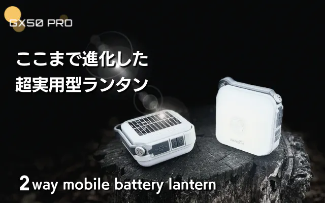 今回、2WAYモバイルバッテリー搭載LEDソーラーランタン「GX50 PRO」を特別価格にてご提供させて頂きます。