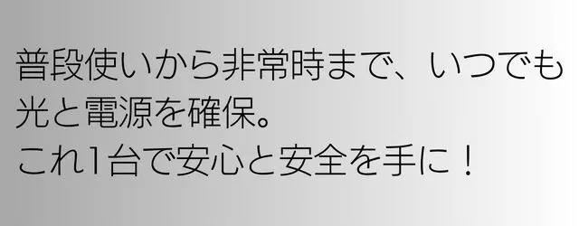 いつ起こるか分からない地震、災害、停電の備えにも。