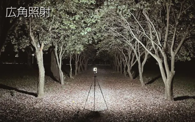 ランタンモードは広角に足下から広範囲を照らします。三脚にも取付けられますので撮影や夜間照明にも役立ちます。