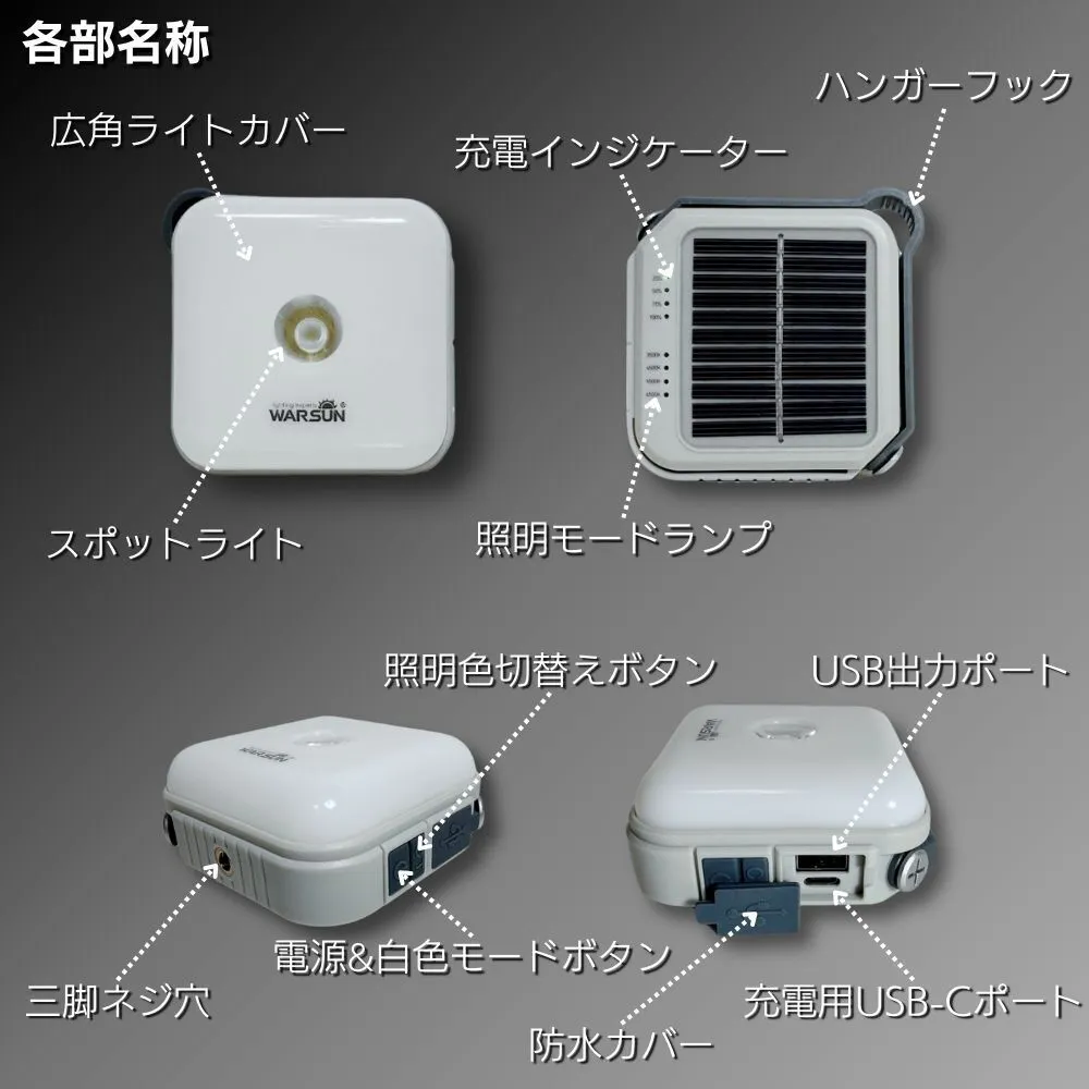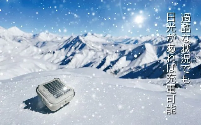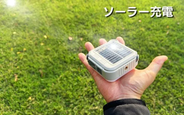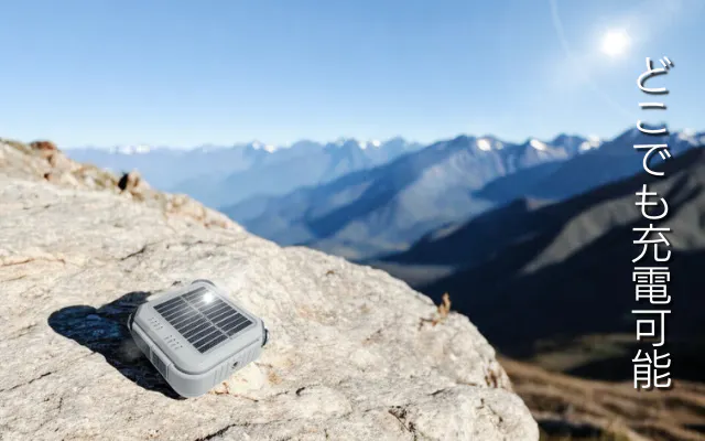 ソーラー充電:電源がない場所でも日光で充電できます。アウトドアや災害、停電時に役立ちます。